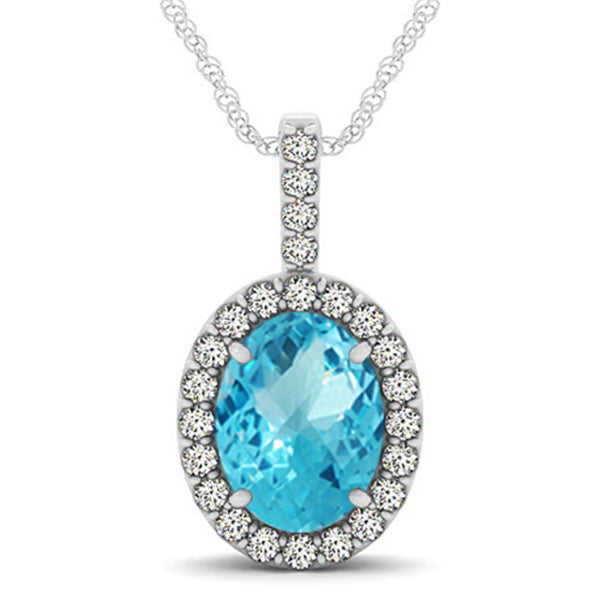 จี้สร้อยคอทองคำขาว 14k ประดับบลูโทแพซและเพชรทรงรัศมี พร้อมเคลือบโรเดียม น้ำหนัก 3.72 กะรัต รูปทรงวงรี ลายตัวเลขสีโรสโกลด์