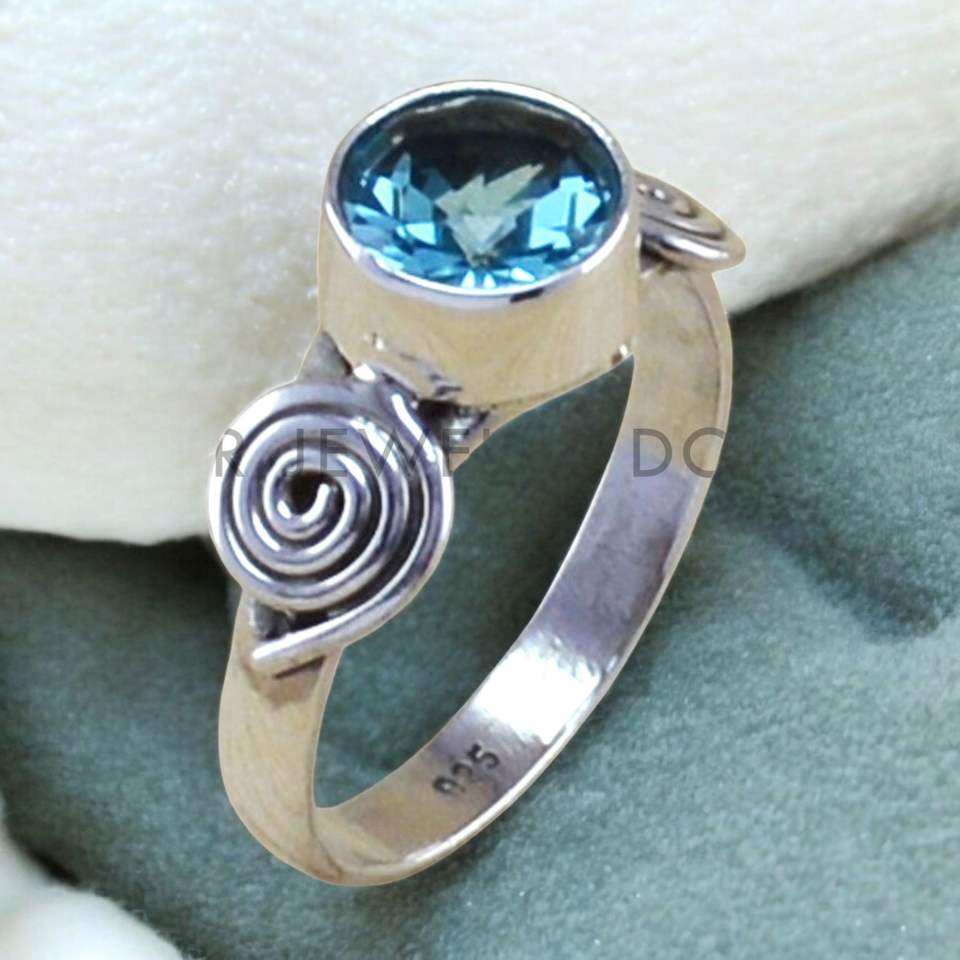 แหวนพลอยบลูโทแพซแท้ ประดับเงินแท้ 925 งานฝีมือประณีต ขายส่งจำนวนมาก