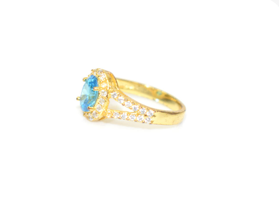 พลอยบุษราคัมสีฟ้ารูปไข่ลูกบาศก์เซอร์โคเนียชุบทองของขวัญวันวาเลนไทน์สำหรับคนที่คุณรักแหวนแฮนด์เมด