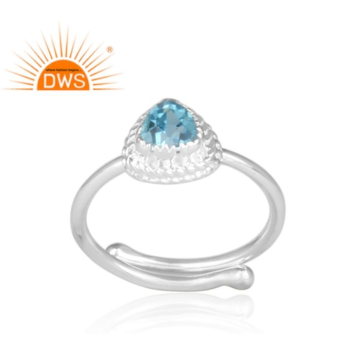 สีฟ้าบุษราคัมพลอยแหวนผู้ผลิตเครื่องประดับเพชรพลอยสามเหลี่ยมการออกแบบของแข็ง925ปรับเงินผู้จัดจำหน่ายเครื่องประดับ