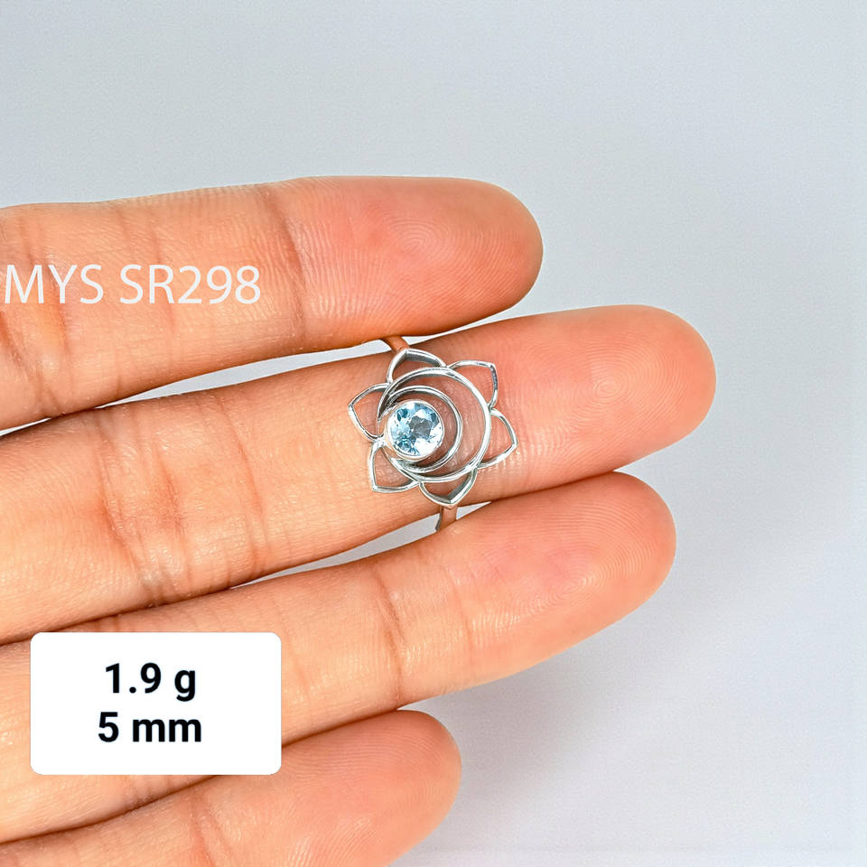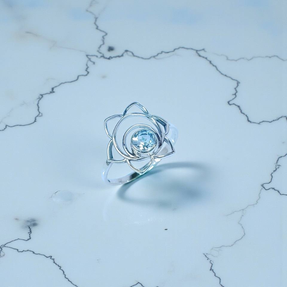 แหวนพลอยบลูโทแพซ แหวนเงินแท้ 925 ทำมือ ดีไซน์โดดเด่น แหวนและเครื่องประดับคุณภาพสูง