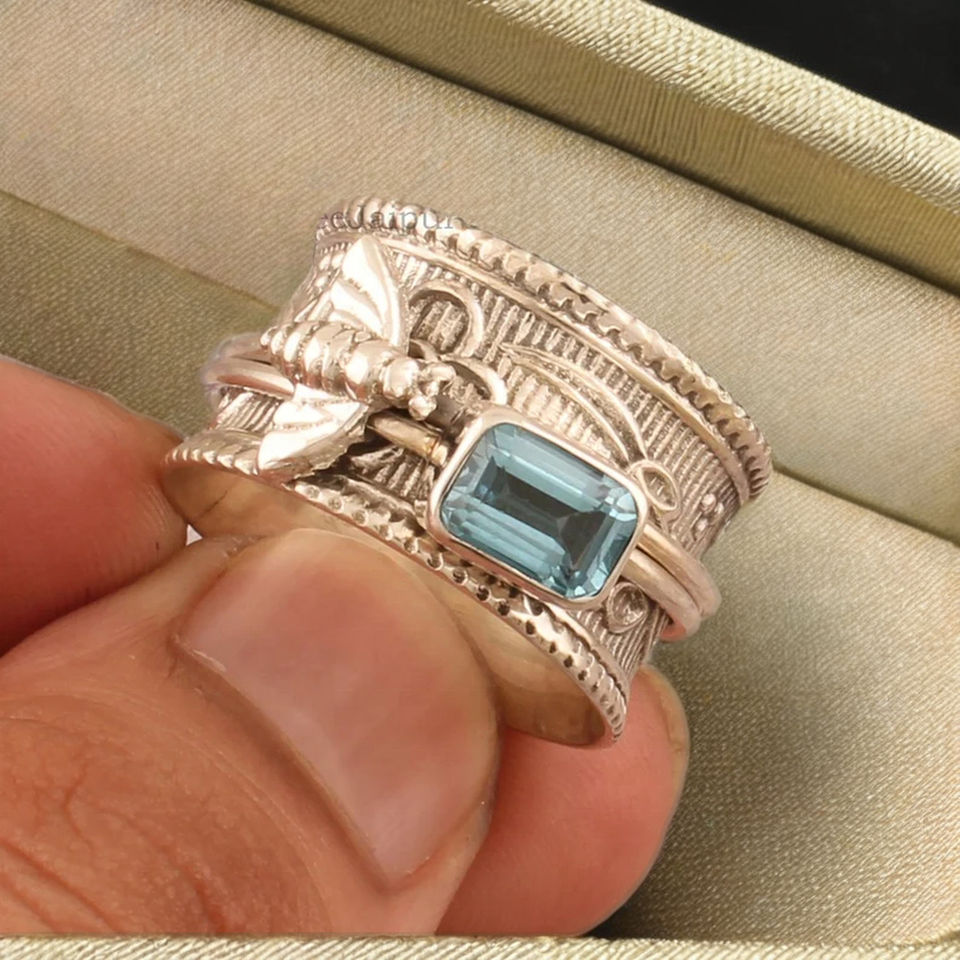 แหวนบลูโทแพซขายดี แหวนสปินเนอร์สำหรับผู้ใหญ่ วัยรุ่น เด็ก ราคาส่งถูกที่สุด