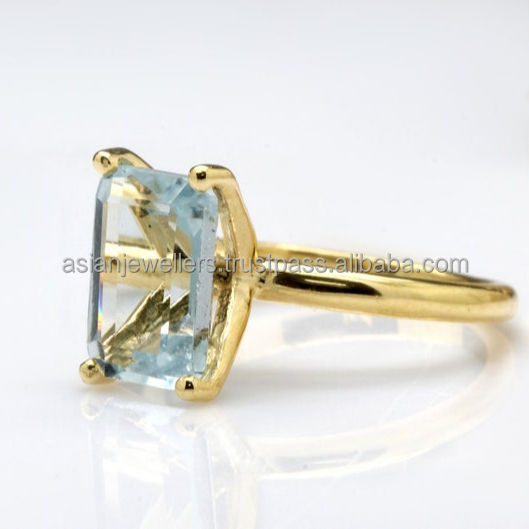 Aqua Chalcedony แหวนอัญมณีใน925เงินสเตอร์ลิงชุบทองซ้อนแฮนด์เมดเงินเครื่องประดับอินเดียที่สวยงาม