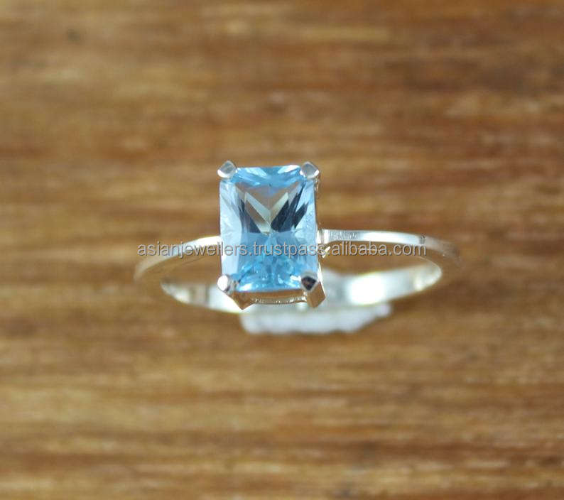 แหวนพลอยสีฟ้าบุษราคัม925เงินแท้ทำด้วยมือชุบทองสวยงามเครื่องประดับแฟชั่นที่ไม่ซ้ำกัน