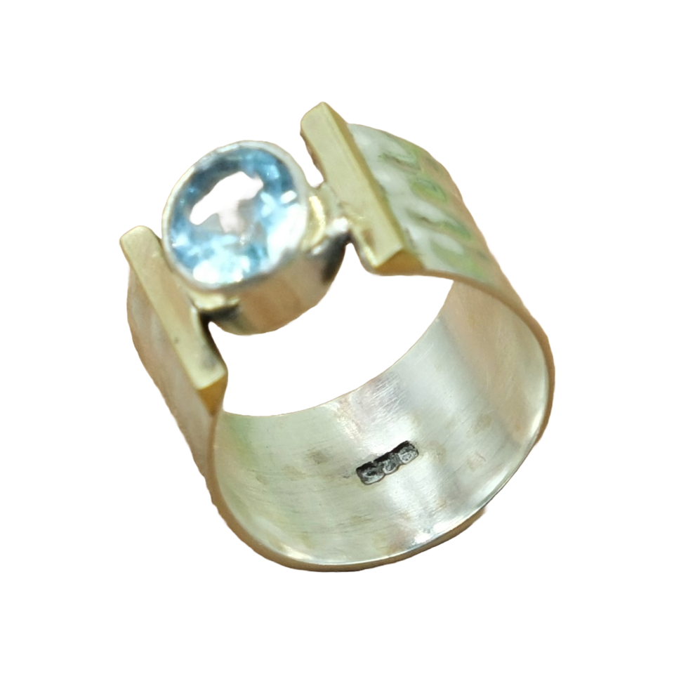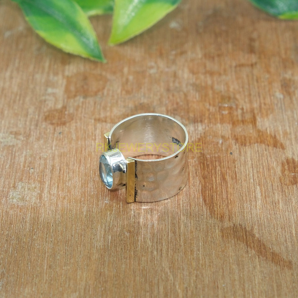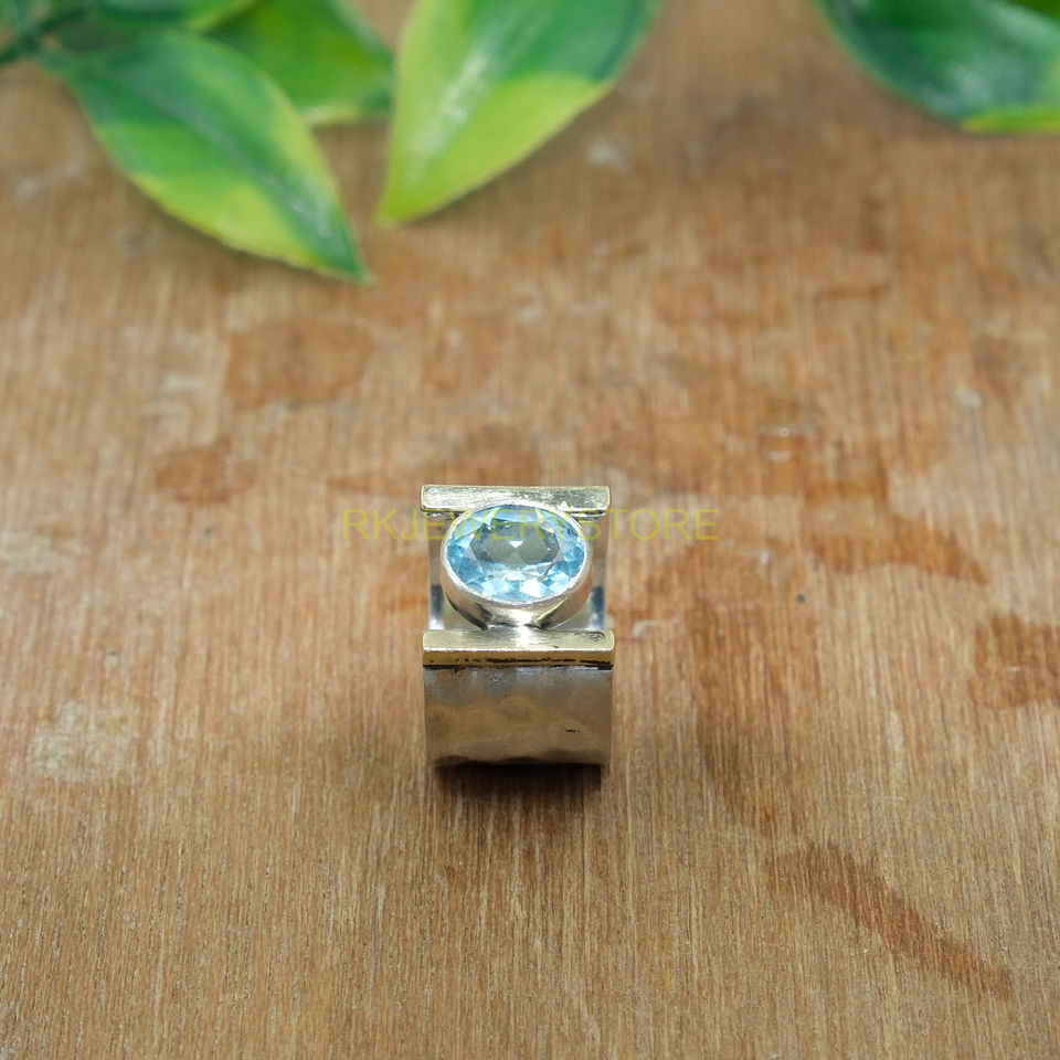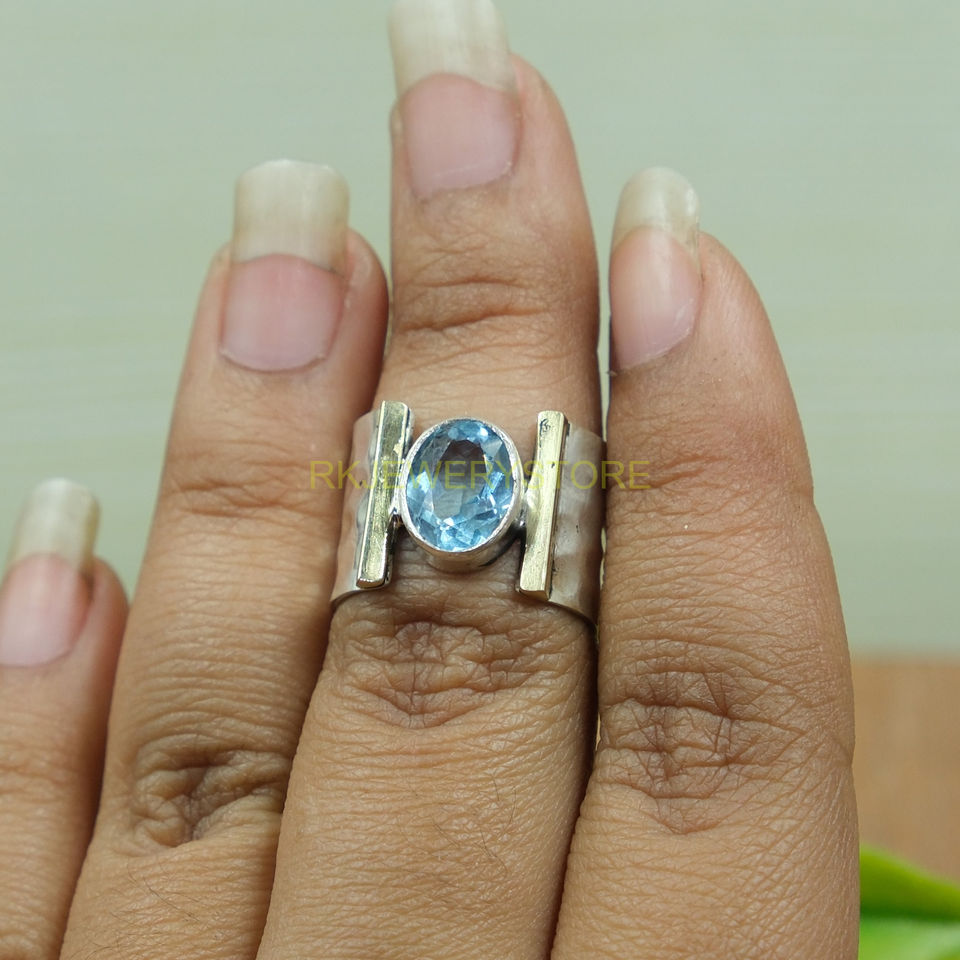 แหวนบลูโทแพซเงินแท้ 925 | แหวนทองเหลืองประดับพลอยสีน้ำเงิน | เครื่องประดับอัญมณี | ของขวัญคริสต์มาสสำหรับเธอ |