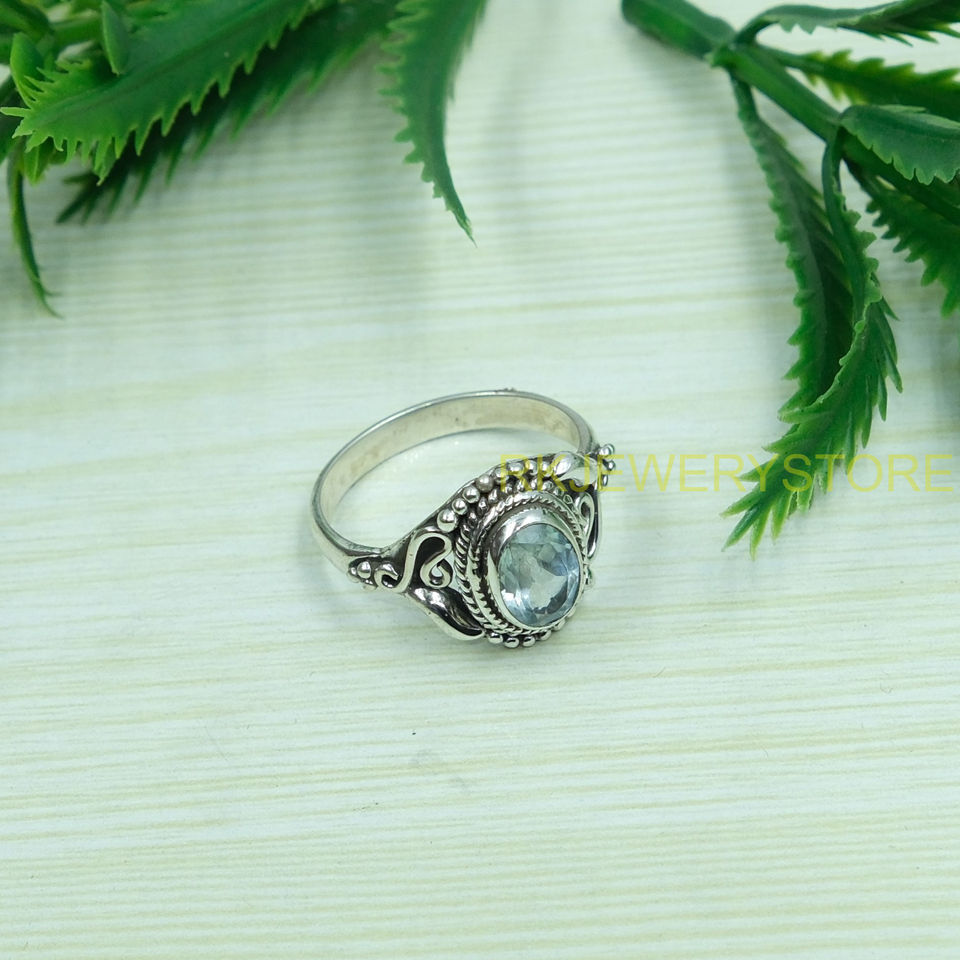แหวนบลูโทปาซ แหวนเงินแท้ 925 แหวนพลอยสีฟ้า แหวนสัญญา แหวนบลูโทปาซ เครื่องประดับของขวัญสำหรับผู้หญิง
