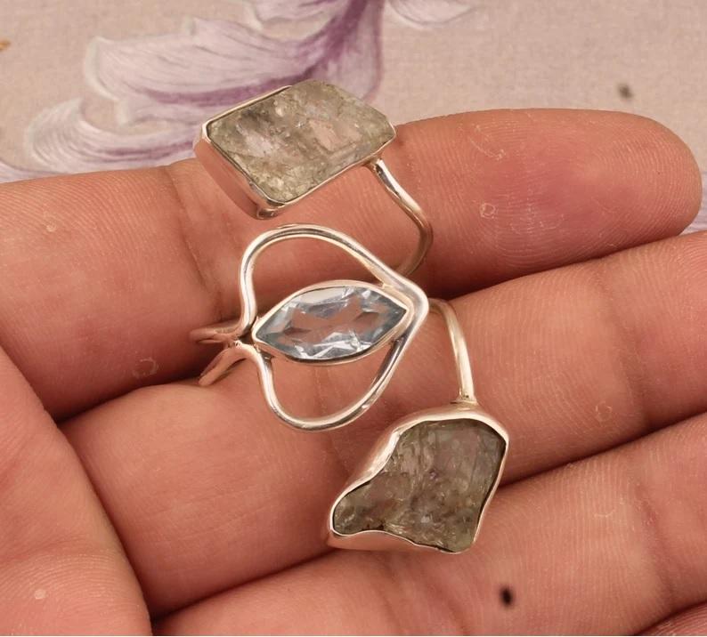 Name:Blue topaz Rough aquamarine Ring