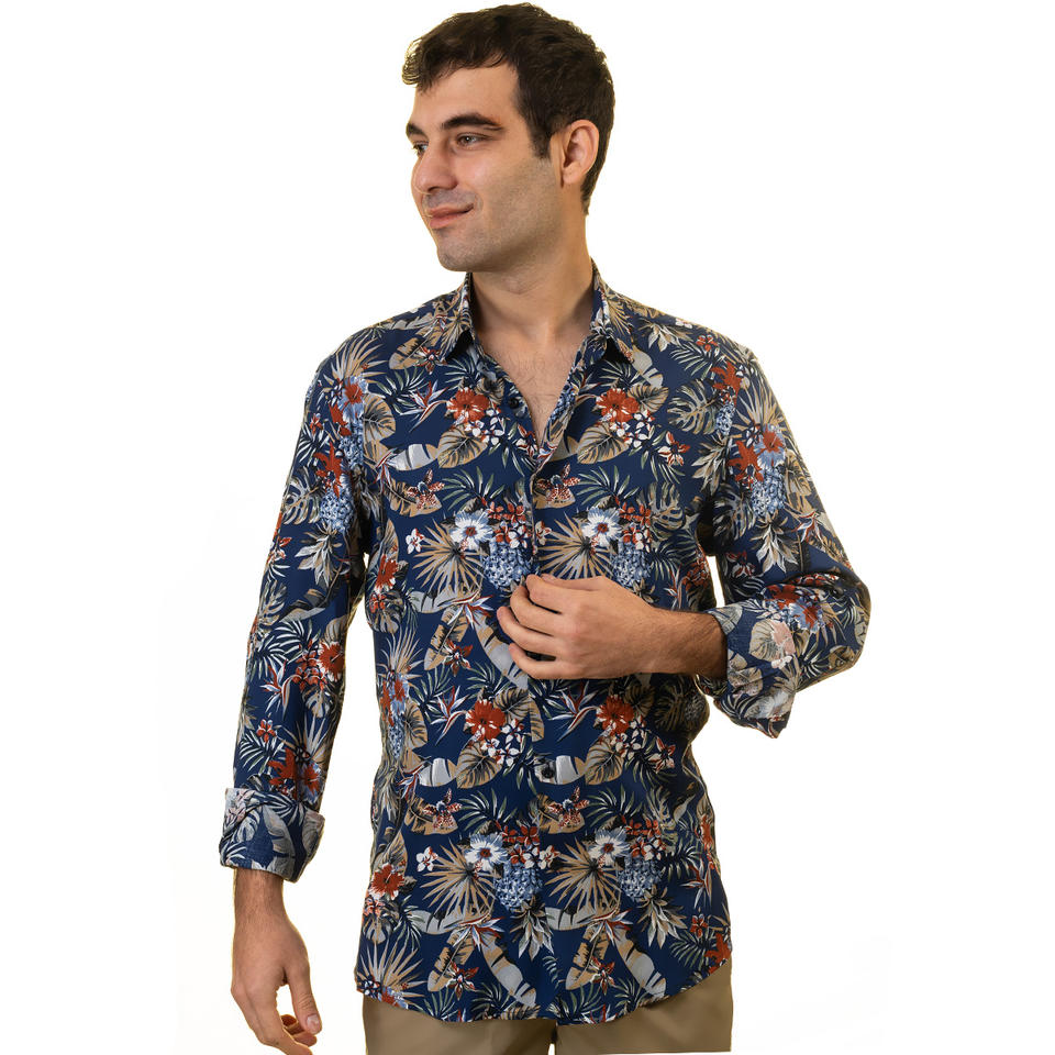 ผ้าฝ้ายTropical Blue Mensเสื้อ