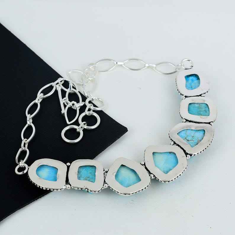 สร้อยคอเทอร์ควอยส์สีฟ้าทัมเบิลเครื่องประดับคริสตัลทำด้วยมือเงินสเตอร์ลิงของขวัญวันเกิดสำหรับผู้หญิง