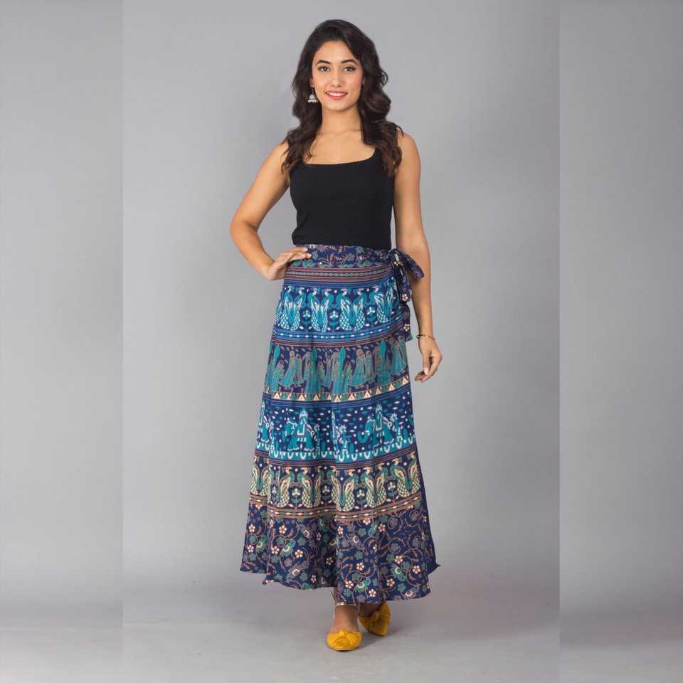 Jaipuri ผ้าฝ้ายพิมพ์ลายพันรอบกระโปรง