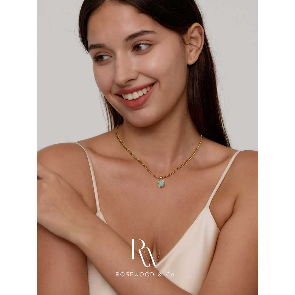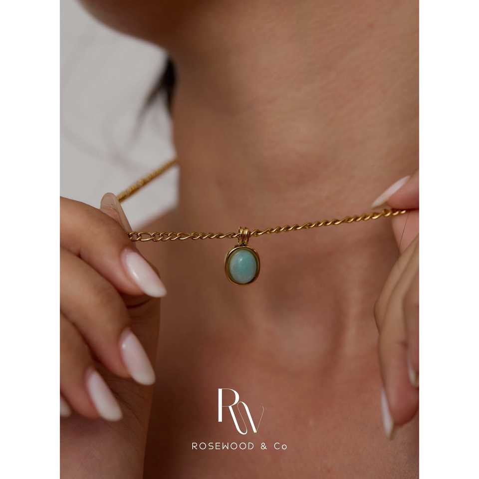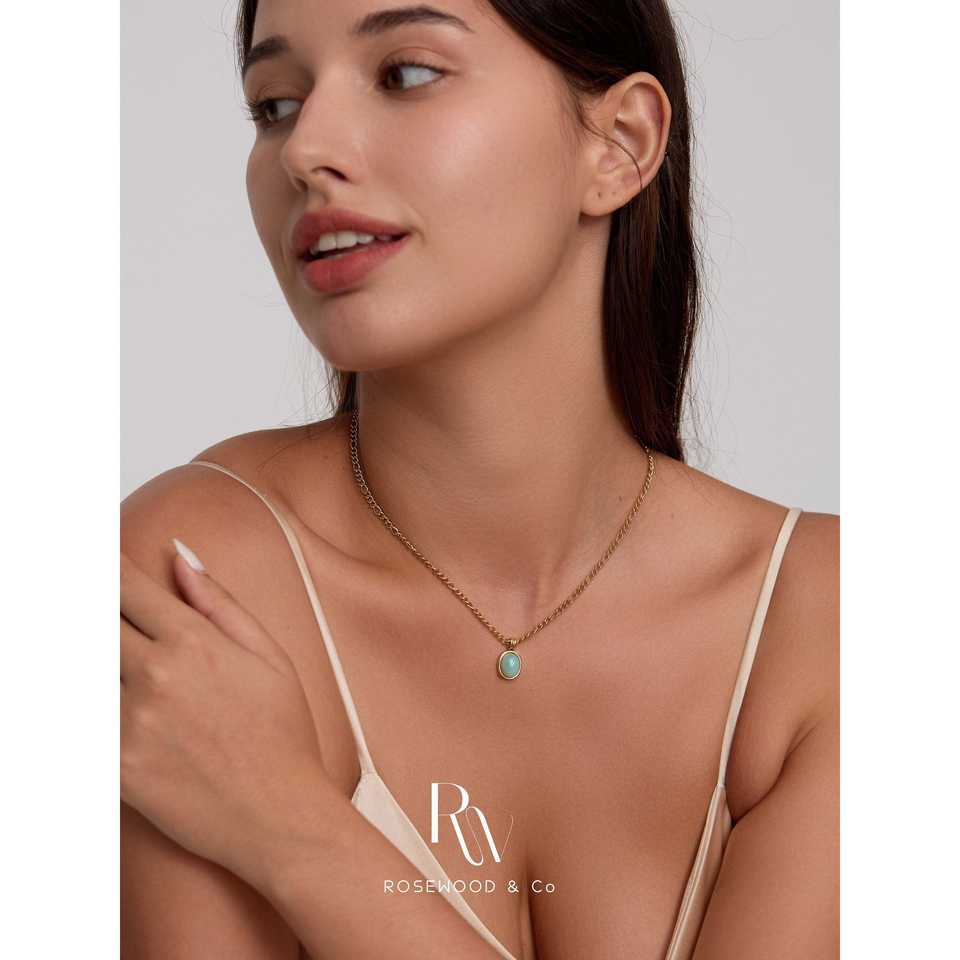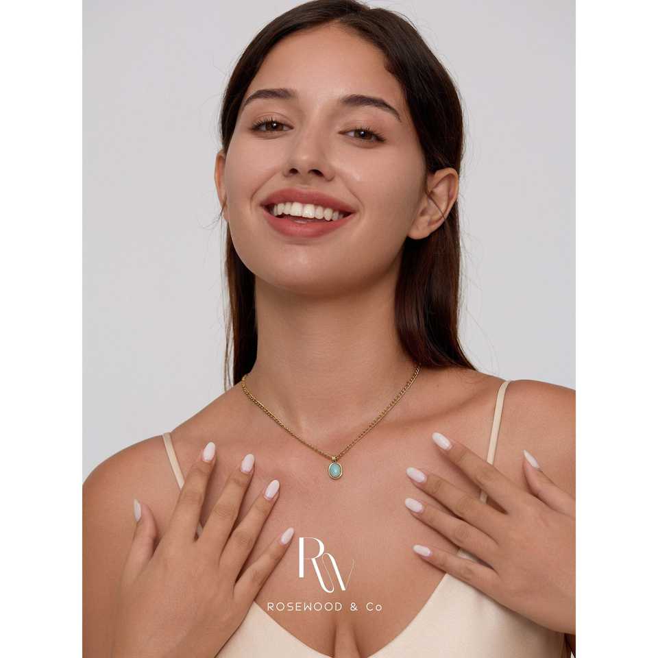 สร้อยคอจี้สีฟ้าเทอร์ควอยซ์พร้อมสายทองไม่ลอก ของขวัญอัญมณีประจำเดือนเกิดสีเขียวสุดอินเทรนด์สำหรับเธอ