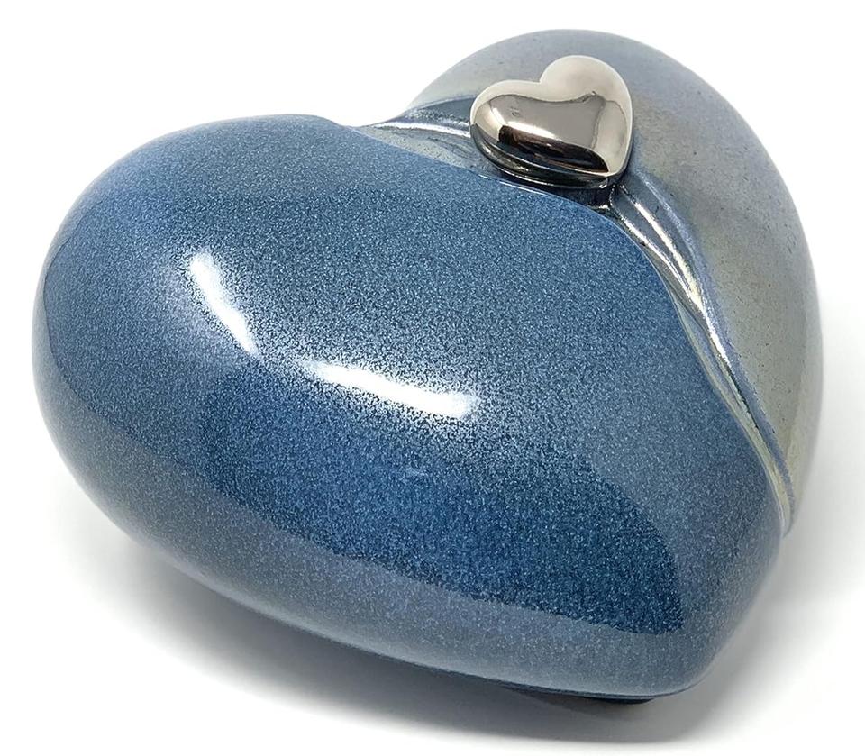 โกศรูปหัวใจสองสีน้ำเงินพร้อมโกศหัวใจขนาดเล็กสำหรับใส่เถ้ากระดูก โกศรูปหัวใจสำหรับใส่เถ้ากระดูกในงานศพ ทำจากโลหะทองเหลือง/อะลูมิเนียม