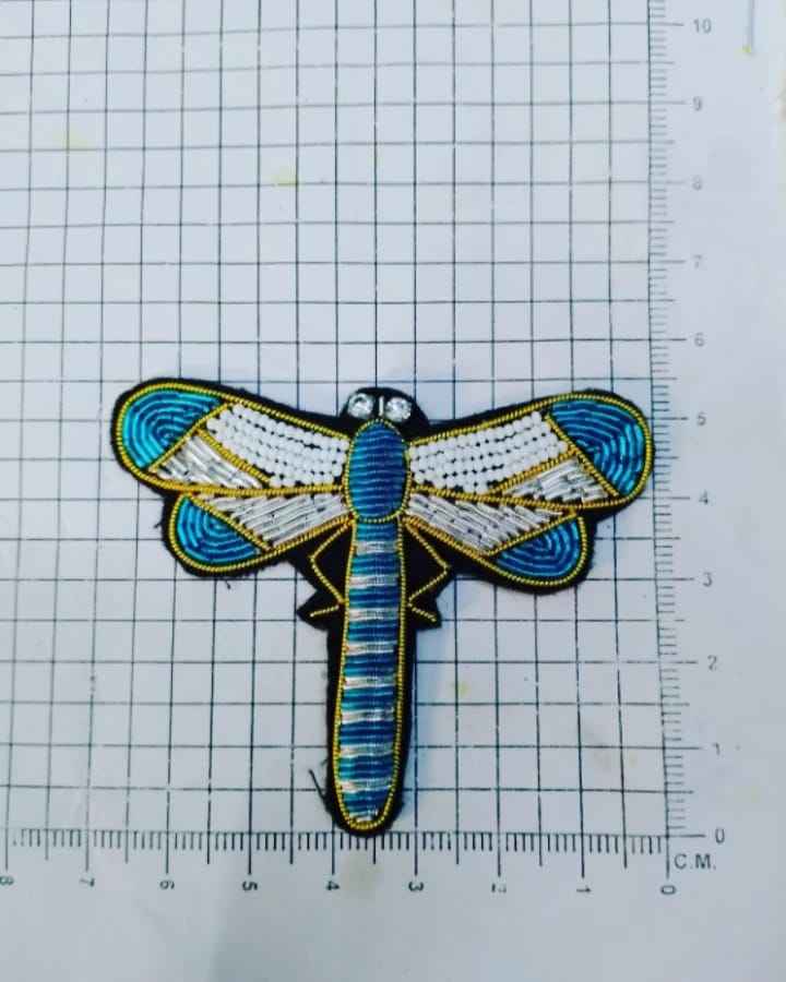 Blue & White Embroidered Velvet Luxury Fashion Dragonfly Patch / Brooch for Hats
