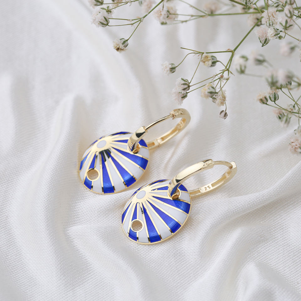 ต่างหูรูปไข่เคลือบสีฟ้าเครื่องประดับตุรกีขายส่งเครื่องประดับเงิน925