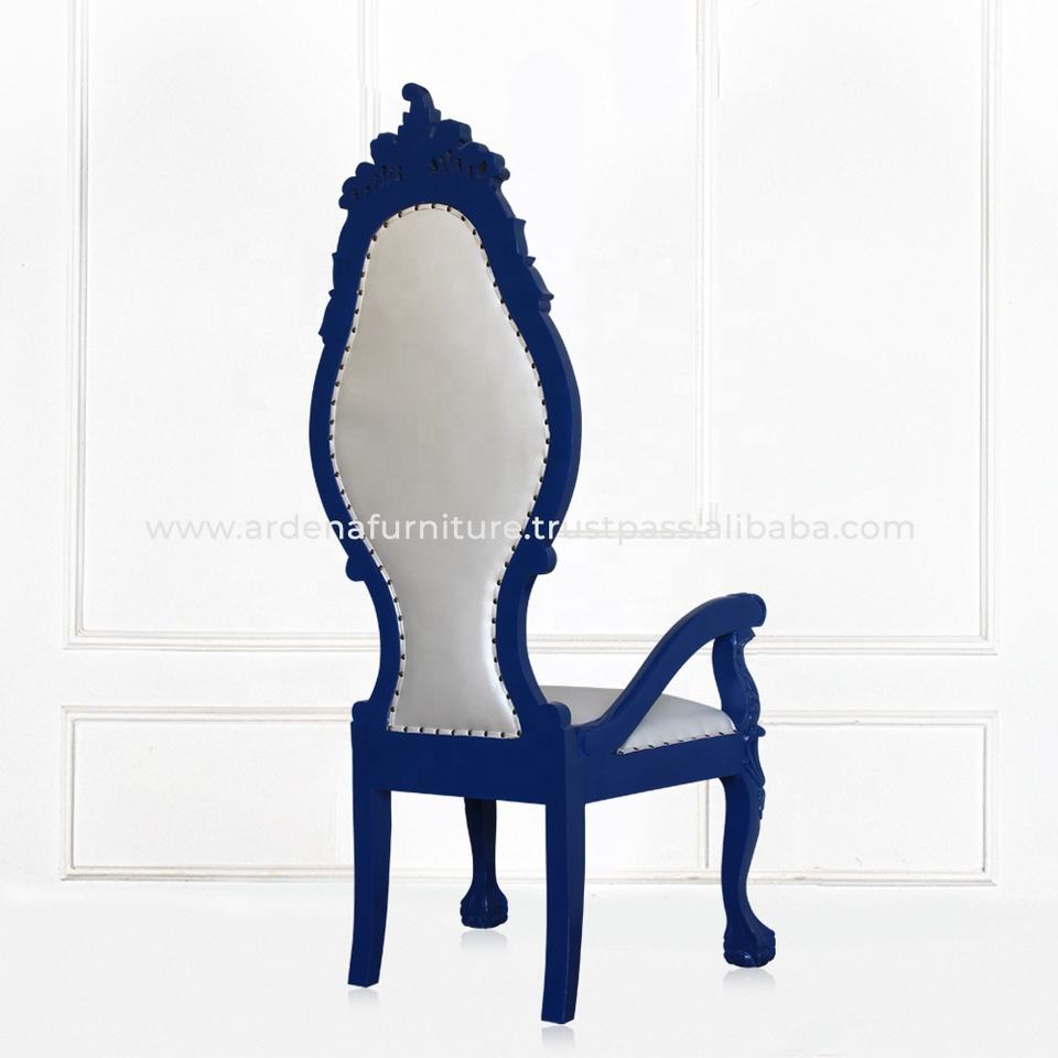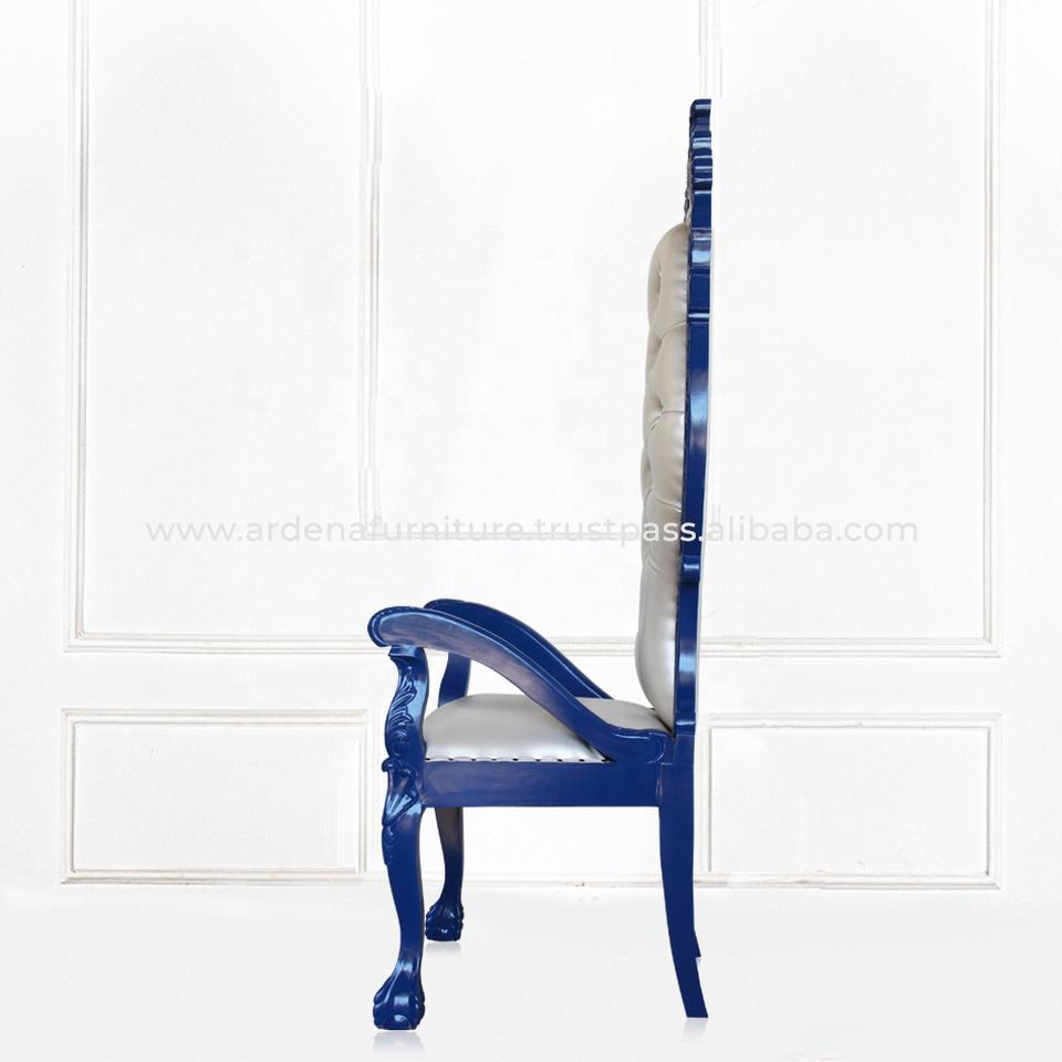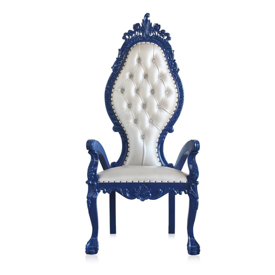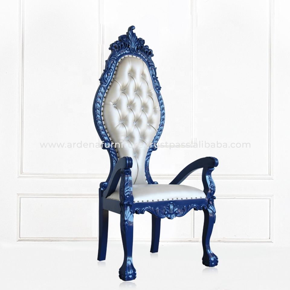 เก้าอี้บัลลังก์ไม้มะฮอกกานีสีน้ำเงินขาวสไตล์ฝรั่งเศสโบราณสำหรับห้องนั่งเล่นในวิลล่า งานอีเว้นท์ และงานเลี้ยง