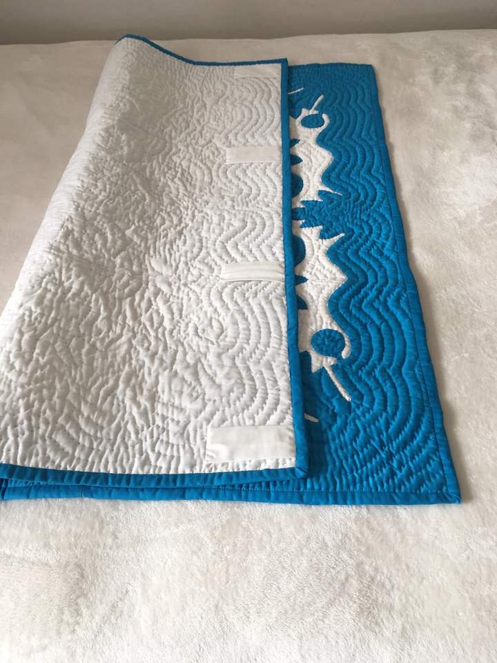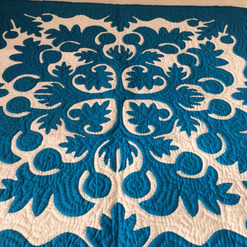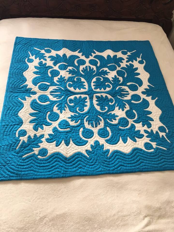 ผ้าห่มลายฮาวายสำหรับตกแต่งบ้านสีน้ำเงินและขาว-การออกแบบอย่างฮาวาย