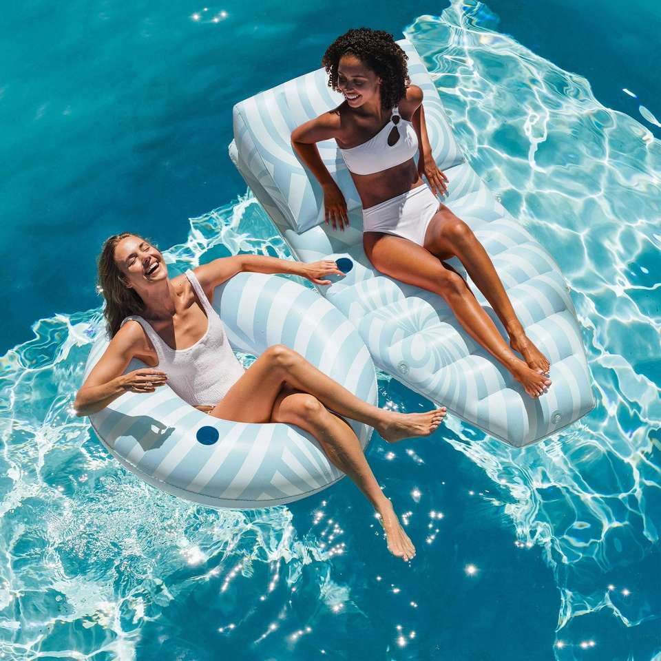 ห่วงยางว่ายน้ำลายวนสีฟ้าขาว, ห่วงยางลายทางสำหรับผู้ใหญ่, ห่วงยางสำหรับปาร์ตี้ริมสระน้ำทะเลสาบในฤดูร้อน
