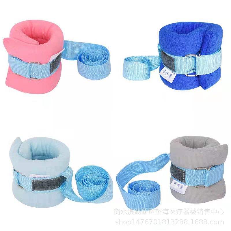 สายรัดข้อมือสีน้ำเงินพร้อมสายรัดปรับได้เพื่อความปลอดภัยของผู้ป่วยและการควบคุมการเคลื่อนไหว