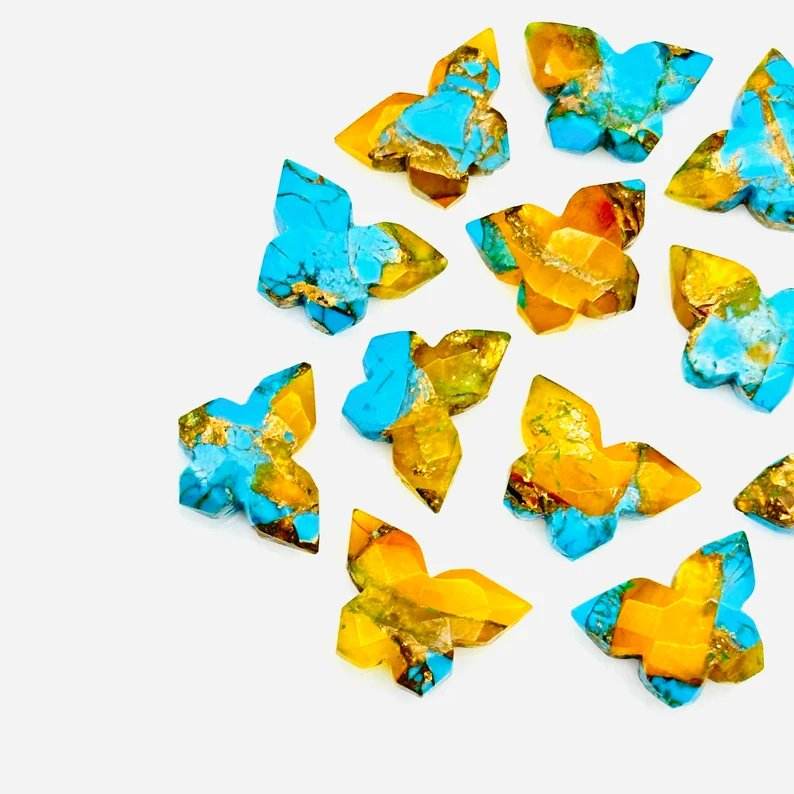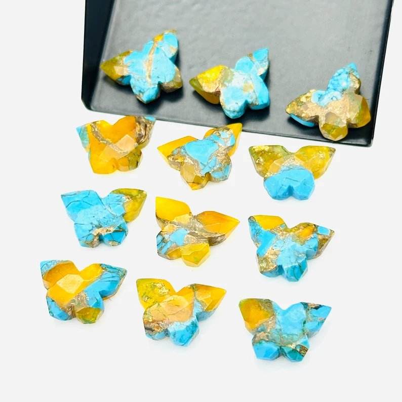 สีพลอย:สีฟ้า & สีเหลืองสีเทอร์ควอยซ์แกะสลัก