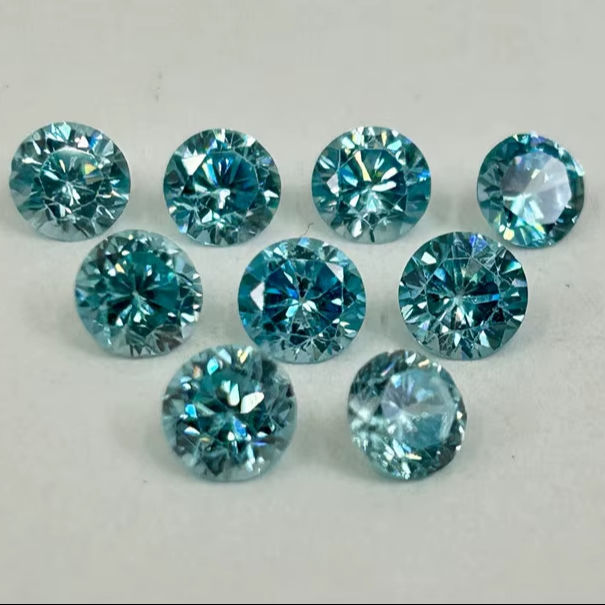 พลอยบลูเซอร์คอนธรรมชาติทรงกลมเจียระไน ขนาดต่างๆ คละไซส์ สำหรับทำเครื่องประดับ