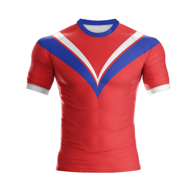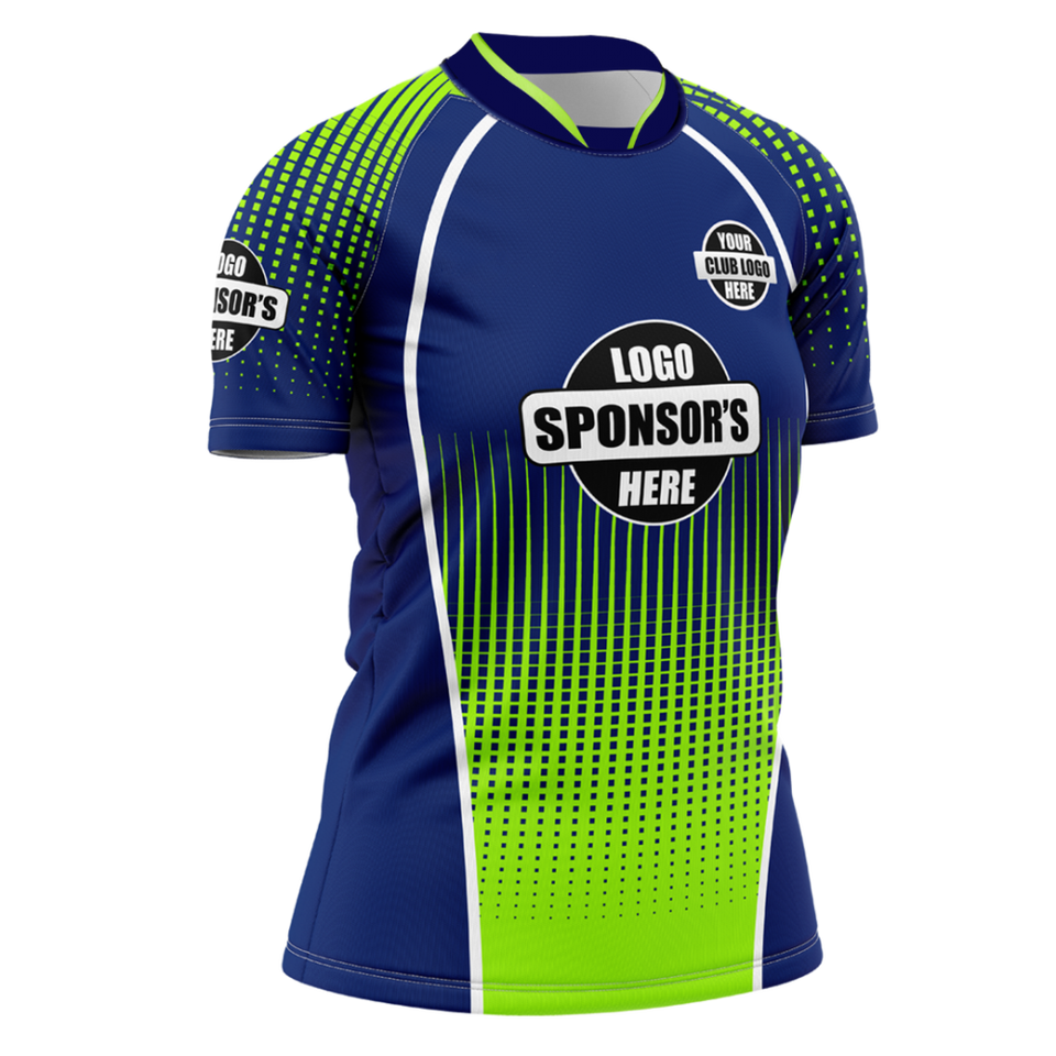 เสื้อรักบี้ระบายอากาศและสะดวกสบายเสื้อรักบี้สีฟ้าและสีเขียวที่กำหนดเองและการออกแบบที่กำหนดเองโลโก้และขนาด