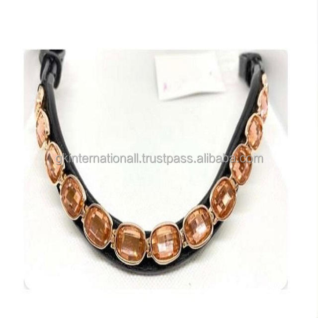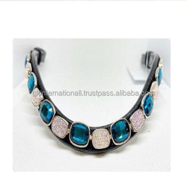 คริสตัลสีฟ้าและสีขาวไข่มุกและอัญมณีสายรัดคิ้วม้าหนังแฮนด์เมดส่วนบุคคลในทุกขนาดและสี