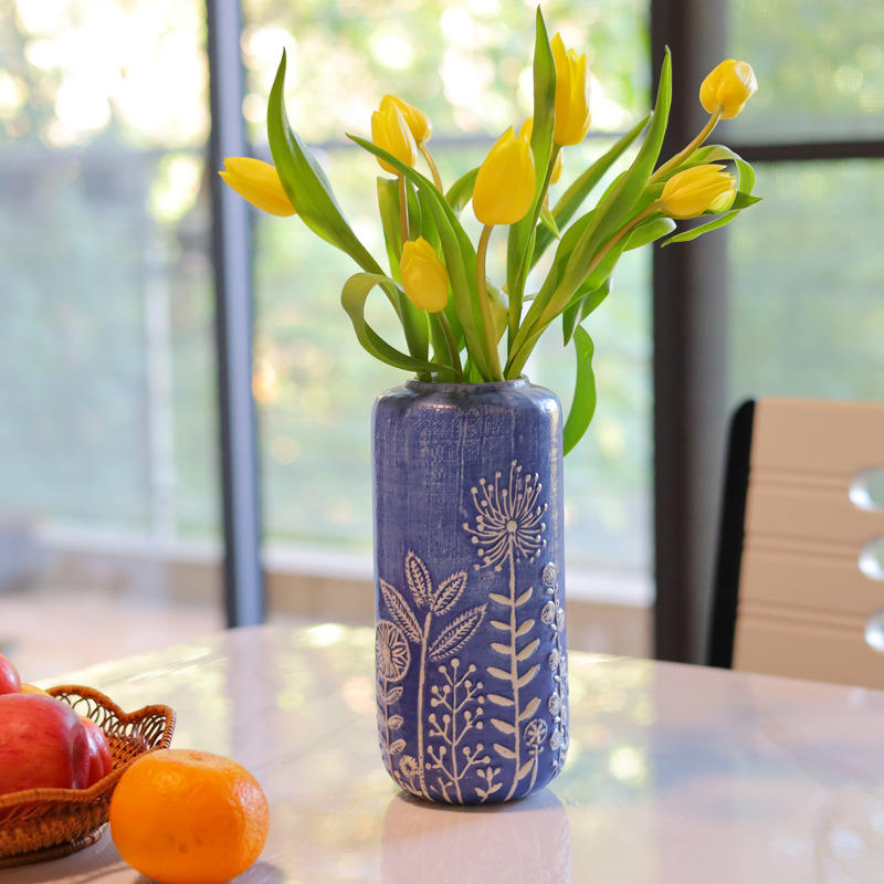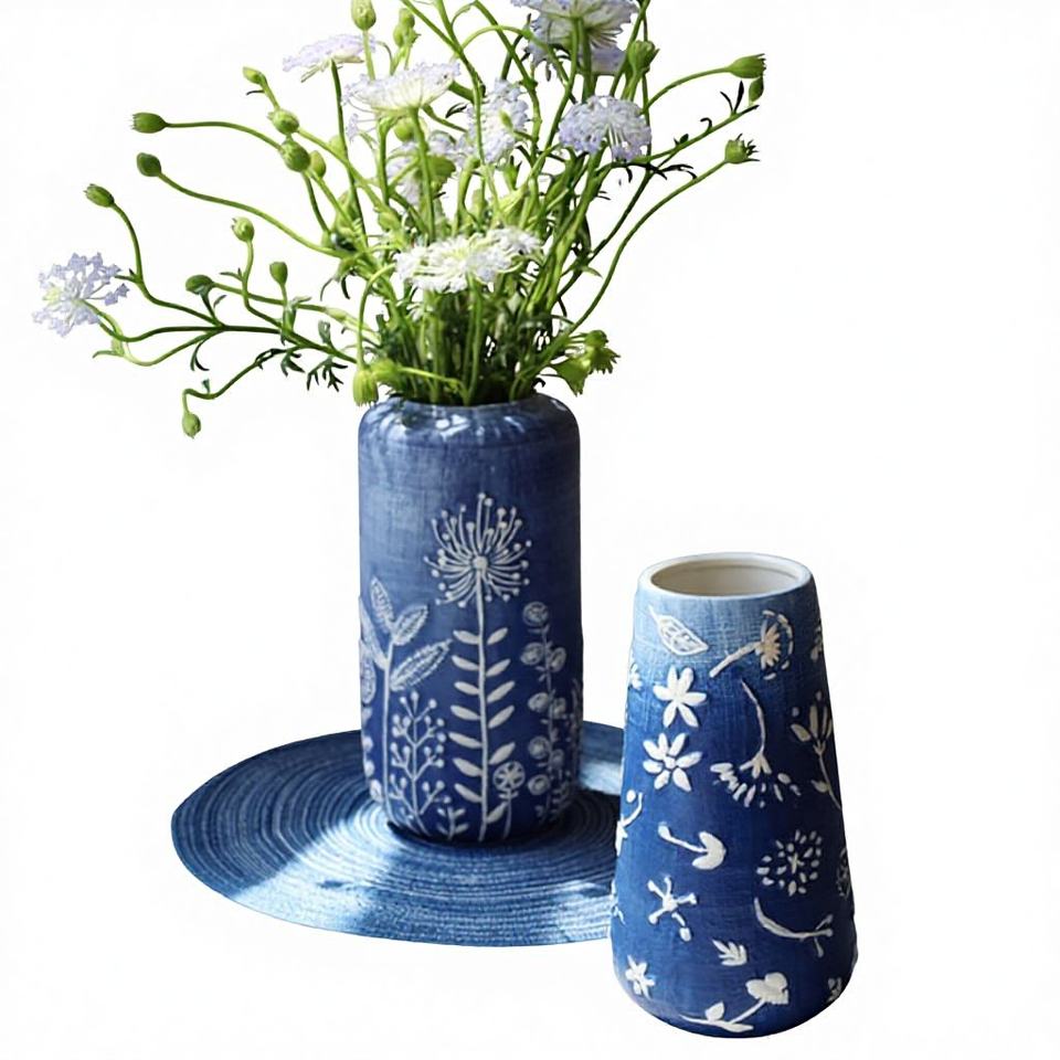 Blue White Porcelain Vase Ceramic Vintage Hand-painted Embossed Decorative Vase Fast Shipping Warm Light for Housewarming Gifts