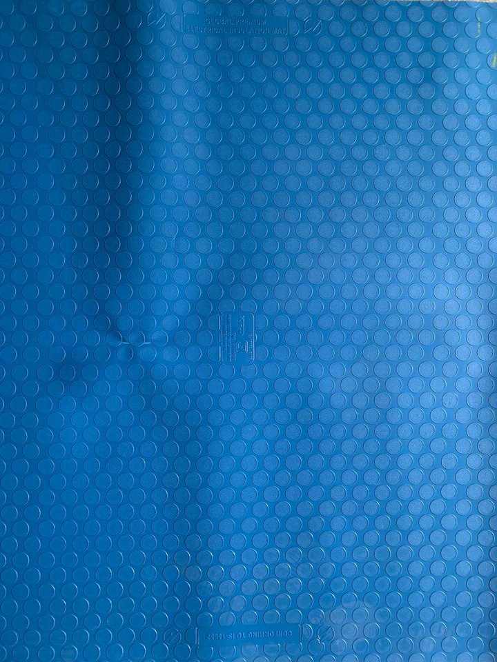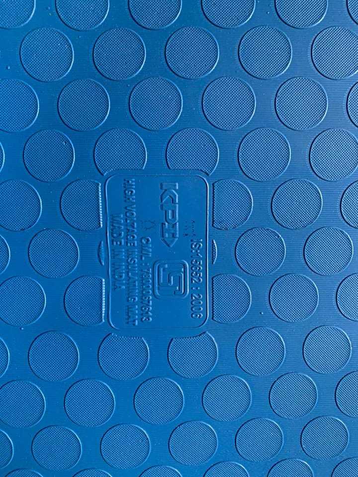 แผ่นรองพื้นสีน้ำเงินป้องกันความเมื่อยล้า วางในโรงงานอุตสาหกรรมสมัยใหม่ พร้อมชั้นวางเครื่องมือและเครื่องจักรที่สะอาด สร้างสภาพแวดล้อมที่ปลอดภัยและเหมาะกับการทำงาน