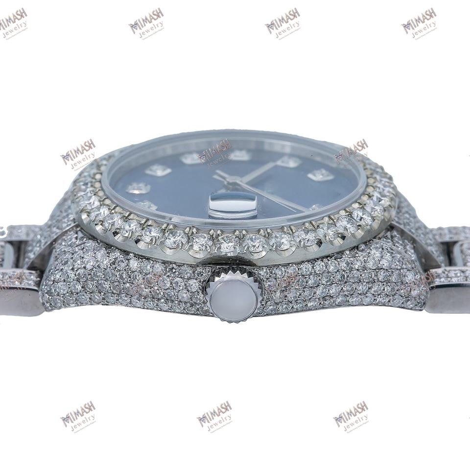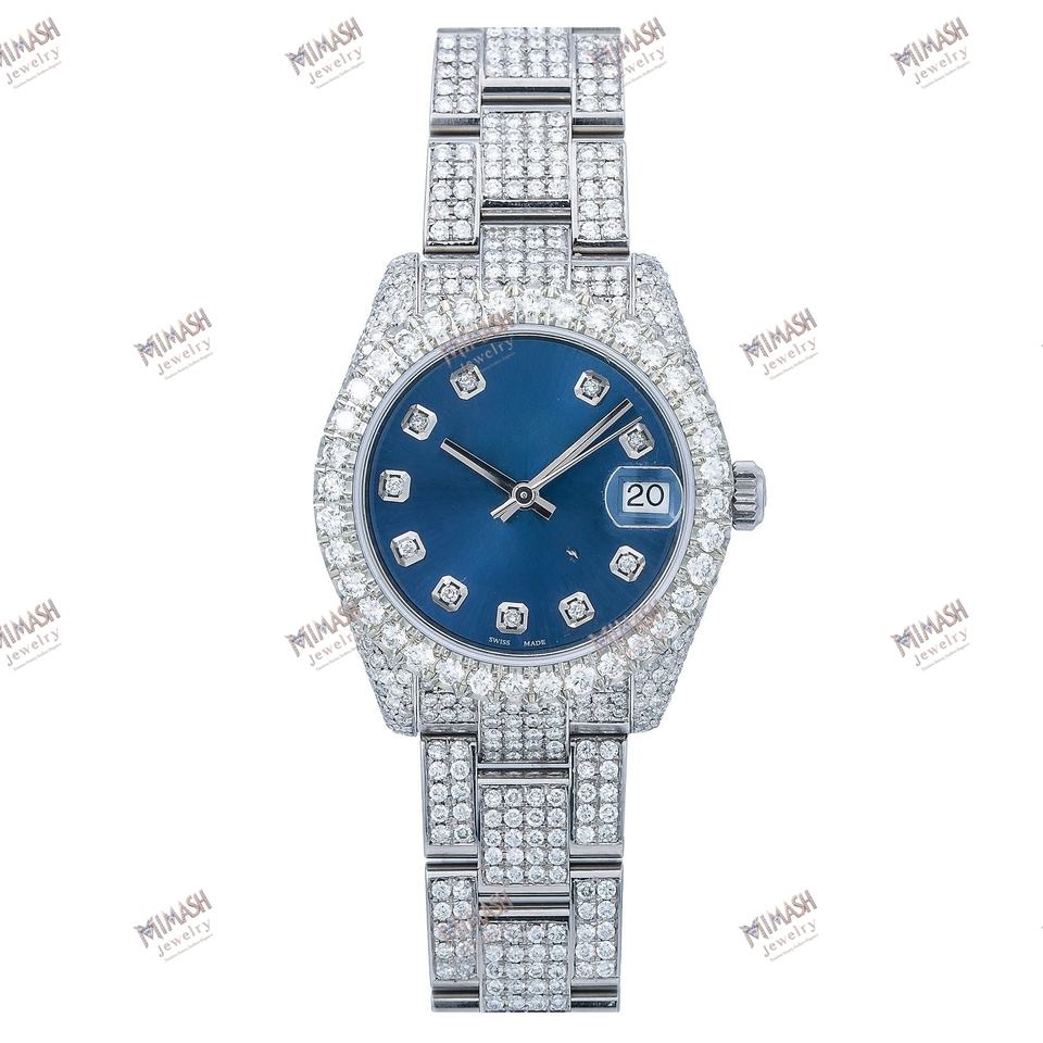 นาฬิกากลไกจักรกลหรูหน้าปัดสีน้ำเงินสีเงินที่มีความชัดเจนระดับ VVS เพชรมอสซาไนท์ยกระดับความซับซ้อนของแฟชั่นของผู้ชาย