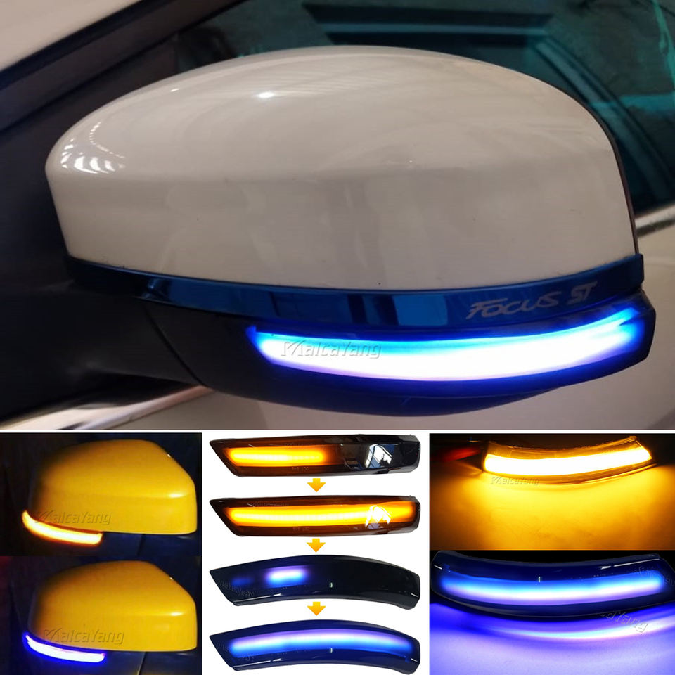 ไฟ LED สีฟ้าสำหรับ Ford Focus 2 3 Mk2 Mk3 Mondeo Mk4สัญญาณไฟเลี้ยวแบบไดนามิกไฟ LED กระจกมองหลังไฟกะพริบ