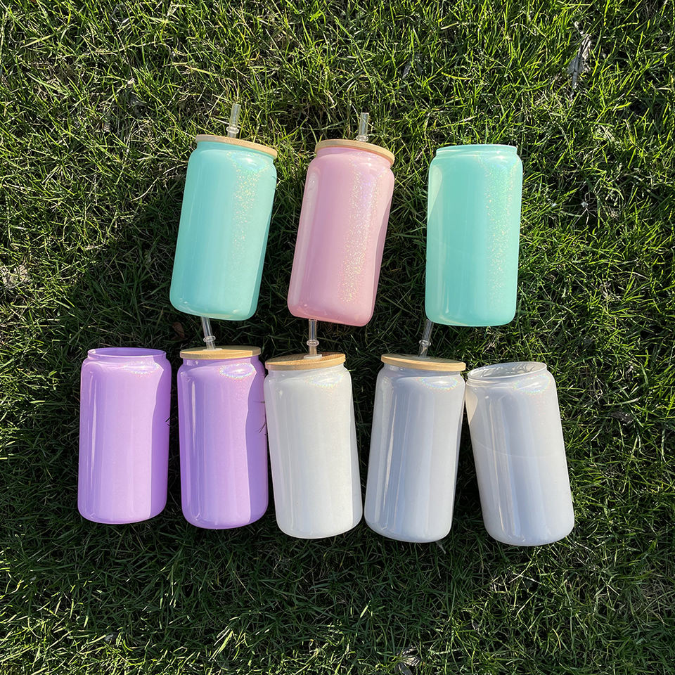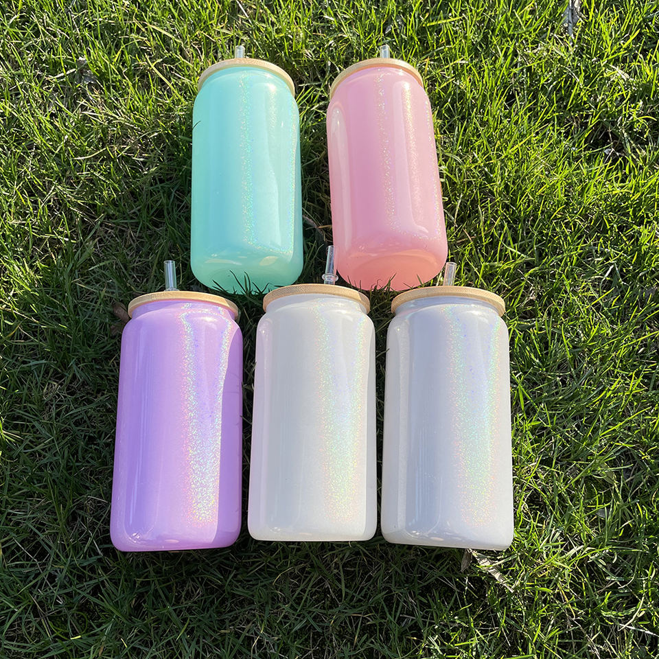 ชื่อผลิตภัณฑ์:กระป๋องแก้วชิมเมอร์สีขาว16ออนซ์พิมพ์ซับลิเมอร์เปล่า