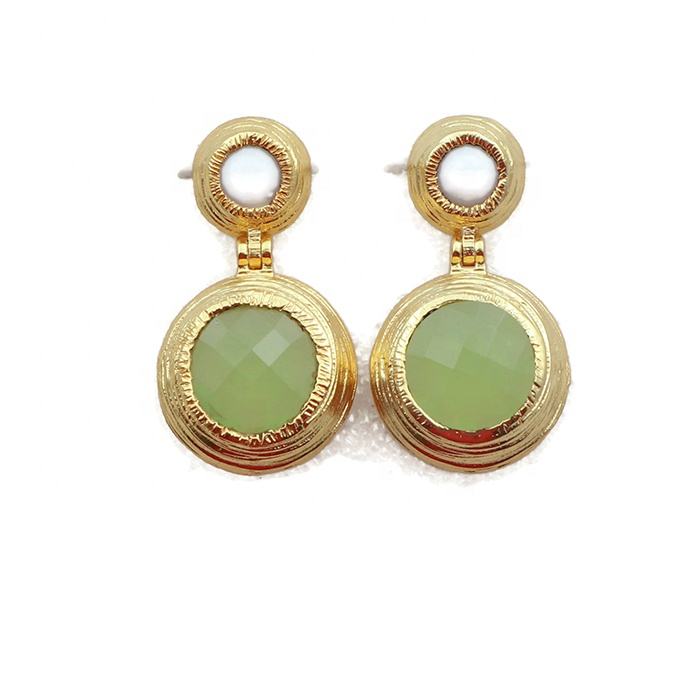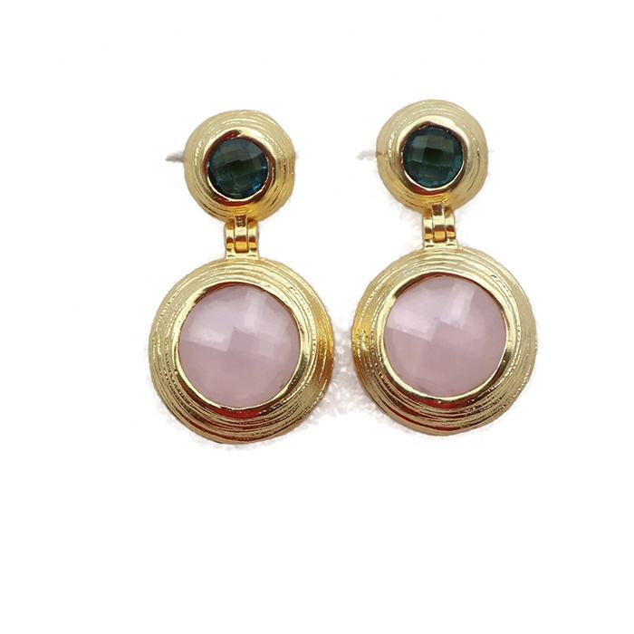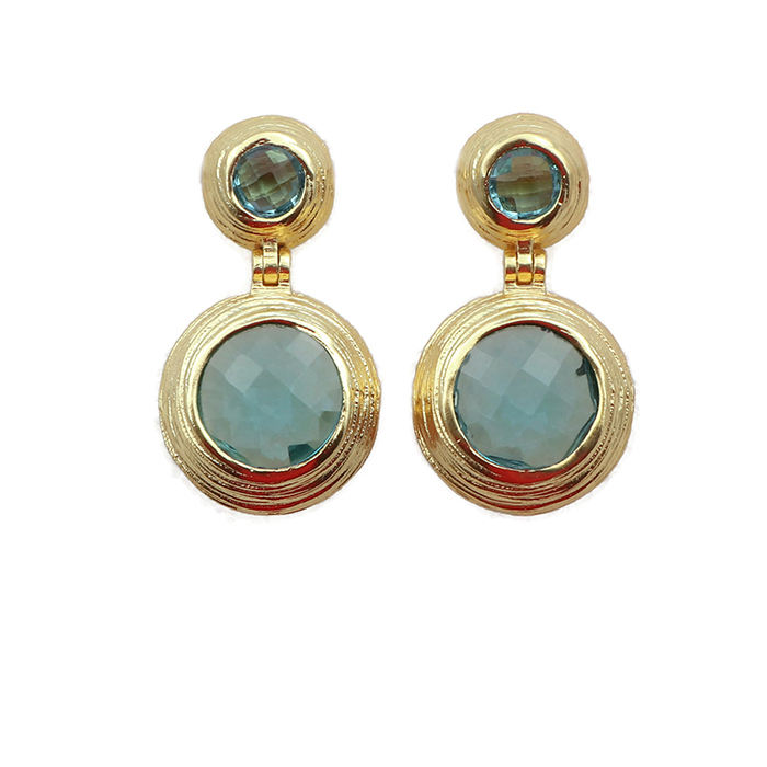 ต่างหูประดับพลอยบุษราคัมสีฟ้าคู่แบบห้อยชุบทองทองเหลืองชุบทองแบบคลาสสิกต่างหูเครื่องประดับวันครบรอบ