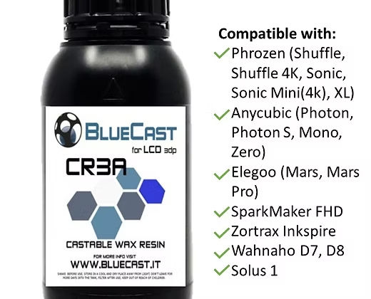 เรซิ่นพิมพ์สามมิติ BlueCast Cr3a สำหรับเครื่องพิมพ์ LCD/DLP น้ำหนัก 0.5 กก. เส้นใยสังเคราะห์ ผลิตในอิตาลี