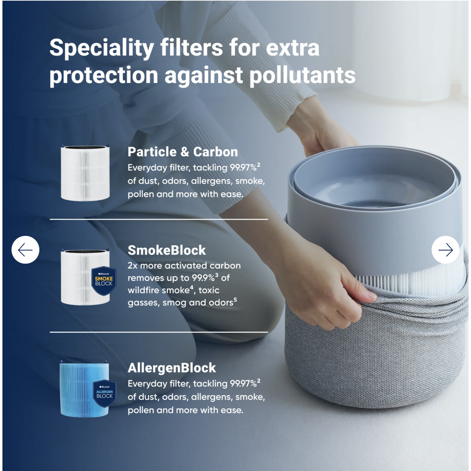 เครื่องฟอกอากาศบลูแอร์ บลูเพียว 3250i แม็กซ์ (สำหรับห้องขนาดเล็ก, 5 ACH 215 ตารางฟุต/20 ตารางเมตร)