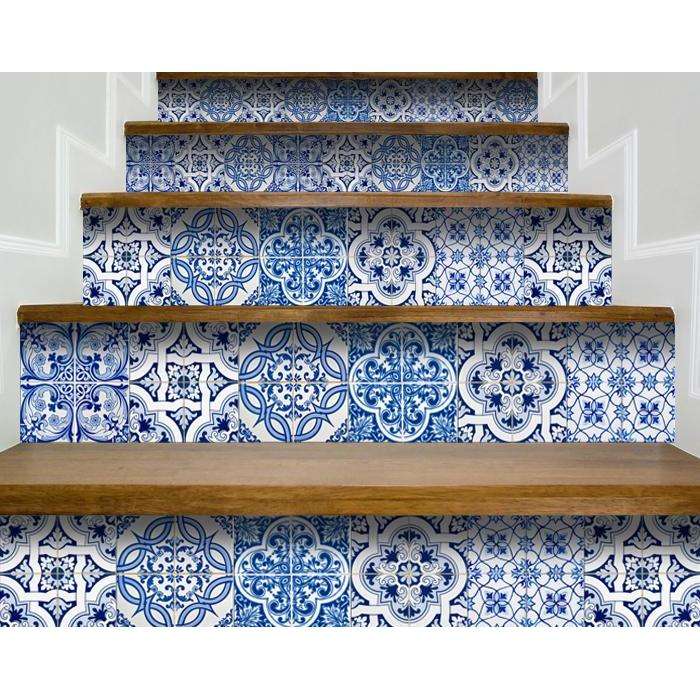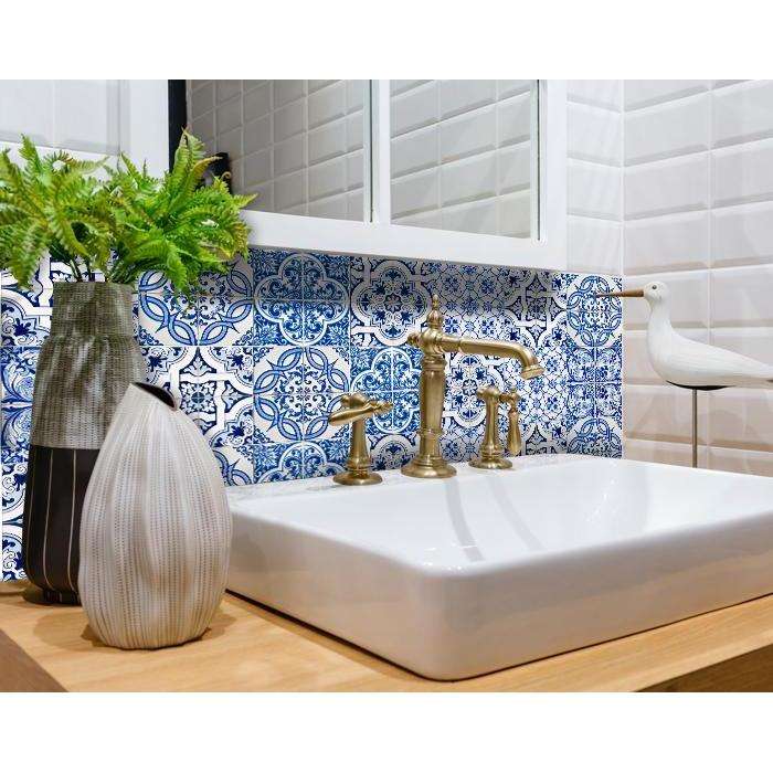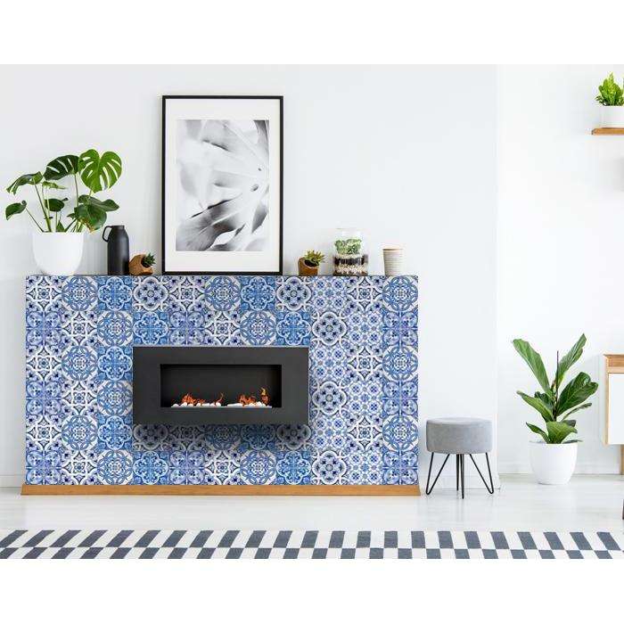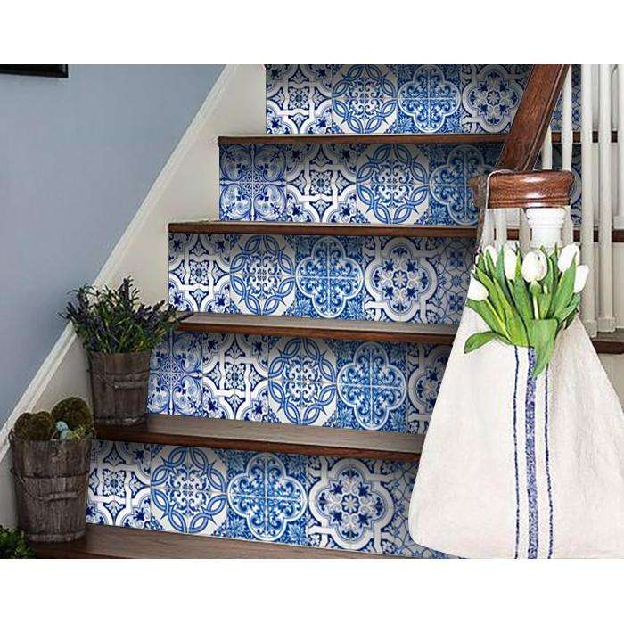 Bluebell Lina 8\" X 8\" Porcelain Peel Stick Tiles Glossy Finish Removable Tiles for Interior Use Anti-Slip PVC Floor Tiles