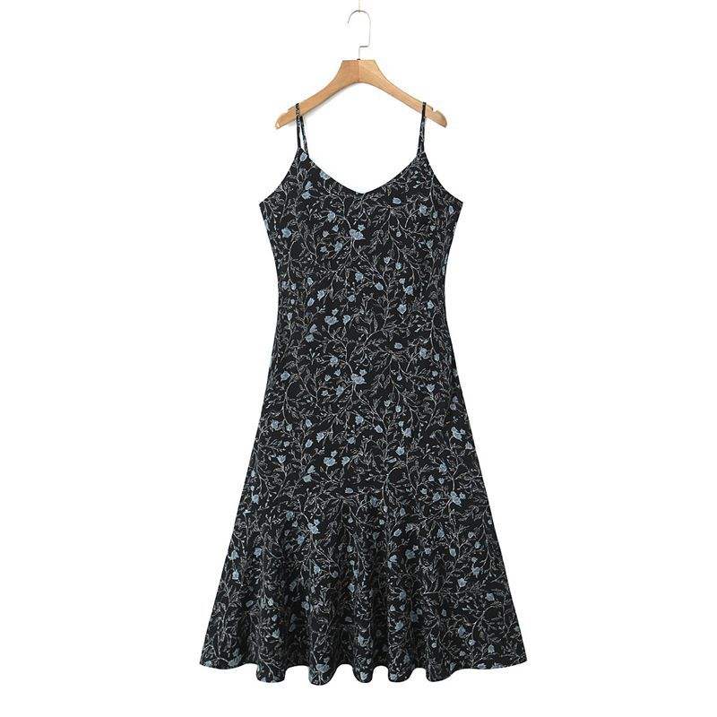 ชุดเดรสคอวีผู้หญิงบลูเบลล์ N8975 ลายพิมพ์ลายดอกไม้ ชุดเดรสแฟชั่นขนาดพลัสไซส์ที่หรูหรา