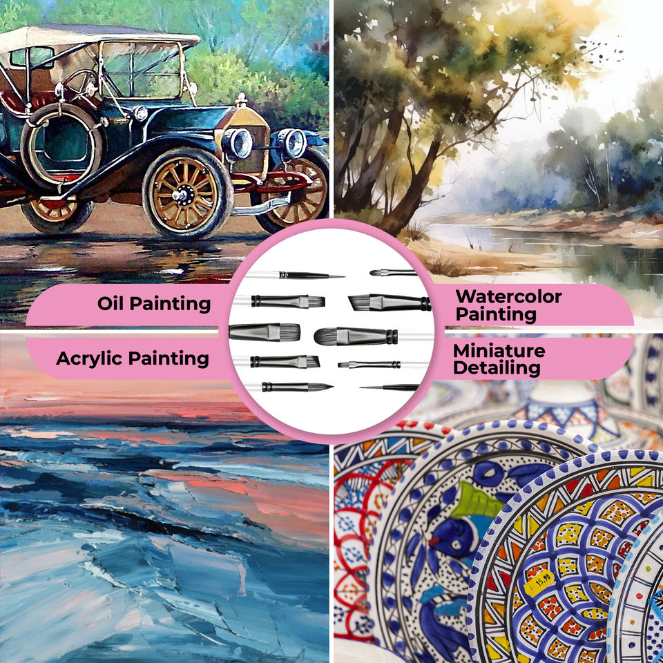 ชุดแปรงระบายสีศิลปินมืออาชีพ10ชิ้นบลูเบิร์ดสำหรับน้ำ/สีน้ำมันภาพวาดอะคริลิคบนผ้าใบแปรงด้ามสีดำ