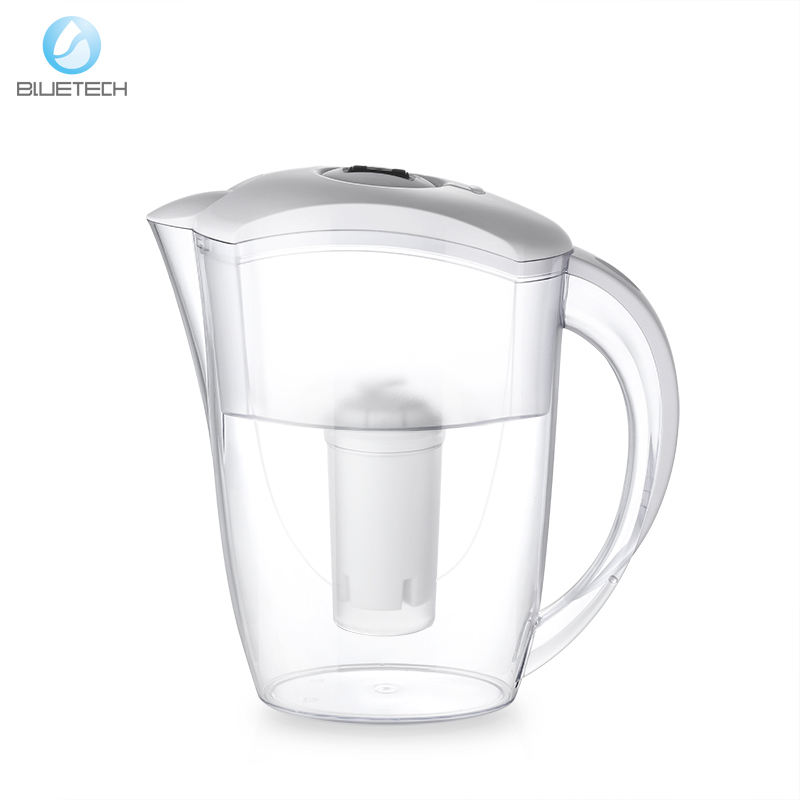 เหยือกกรองน้ำพลาสติกแบบใช้มือบลูเทค 3.5 ลิตร จากประเทศจีน กำจัดแบคทีเรียและคลอรีน พร้อมตัวบ่งชี้สำหรับน้ำด่าง