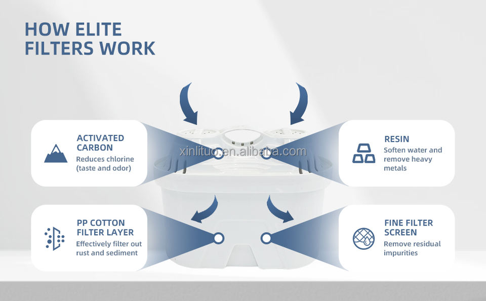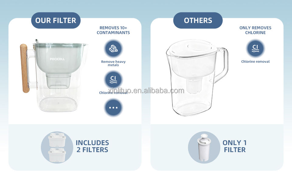 เหยือกกรองน้ำแบบแมนนวล Bluetech เครื่องกำจัดคลอรีนแบคทีเรียในจีนพร้อมตัวบ่งชี้