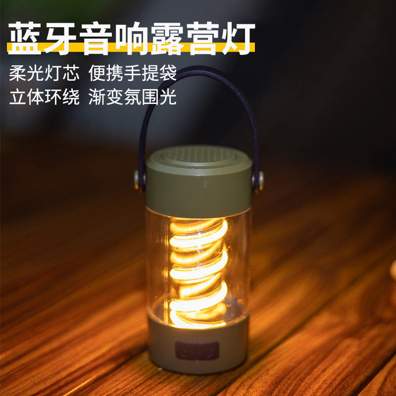 ไฟแคมป์ปิ้งบลูทูธ LED แบบชาร์จไฟได้ ไฟเต็นท์พกพาสำหรับใช้งานกลางแจ้ง พร้อมลำโพงไร้สาย แสงไฟบรรยากาศสีขาวอบอุ่น