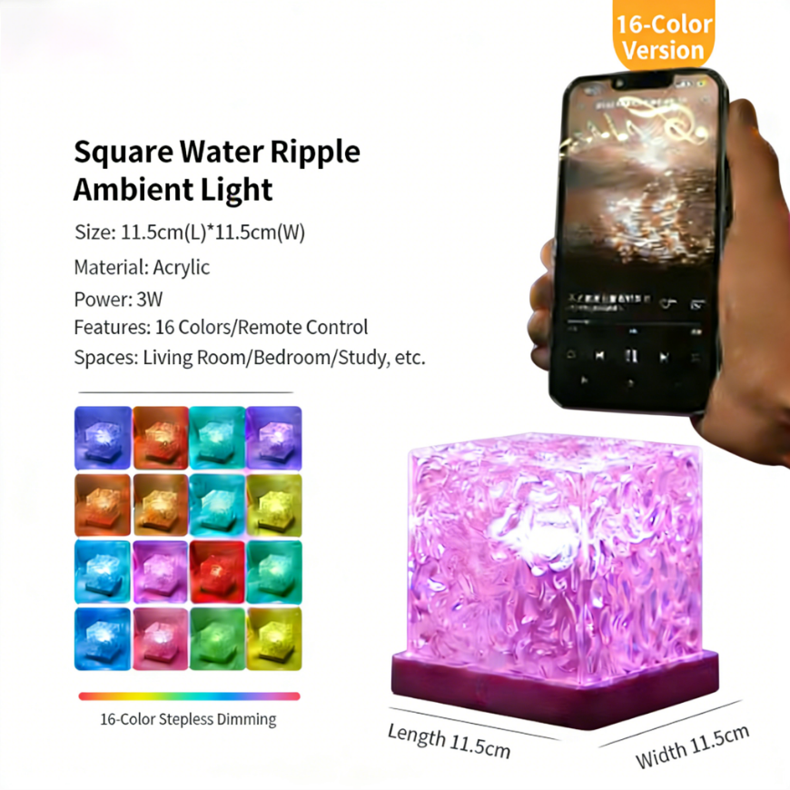 USB แสงเหนือ รูปแบบคลื่นทะเลแบบไดนามิก ไฟ LED สีสันสดใส ตกแต่งห้องนอน ไฟฉายโปรเจคเตอร์ทรงสี่เหลี่ยม