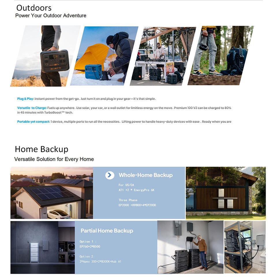 เครื่องกำเนิดไฟฟ้าพลังงานแสงอาทิตย์ Bluetti สำหรับขายส่ง ขนาด 500w 1000w 2000w 2400 วัตต์ 3000w 120v 230v สถานีพลังงานแบตเตอรี่แบบพกพาสำหรับกิจกรรมกลางแจ้ง