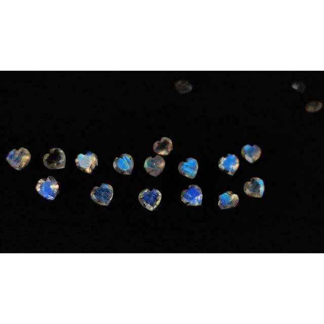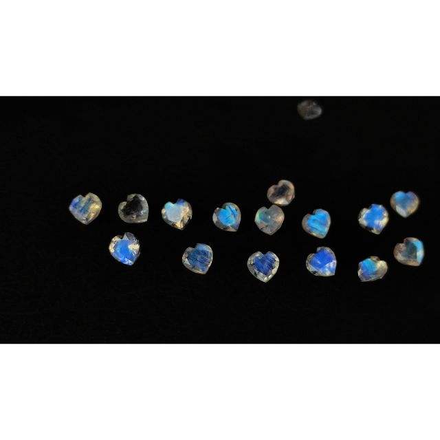 มูนสโตนสีรุ้งประกายฟ้า รูปหัวใจ ขนาด 3 มม.-12 มม. สีขาวธรรมชาติ เจียระไนรูปหัวใจ ล็อตจากแอฟริกา RUDRANSH EXPORT สำหรับทำเครื่องประดับ DIY