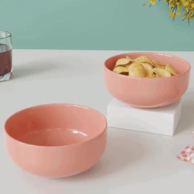 ชามเซรามิกสีชมพูอ่อนทรงกลมทันสมัย เงางาม แข็งแรงทนทาน เหมาะสำหรับตกแต่งโต๊ะอาหารสไตล์ทันสมัย