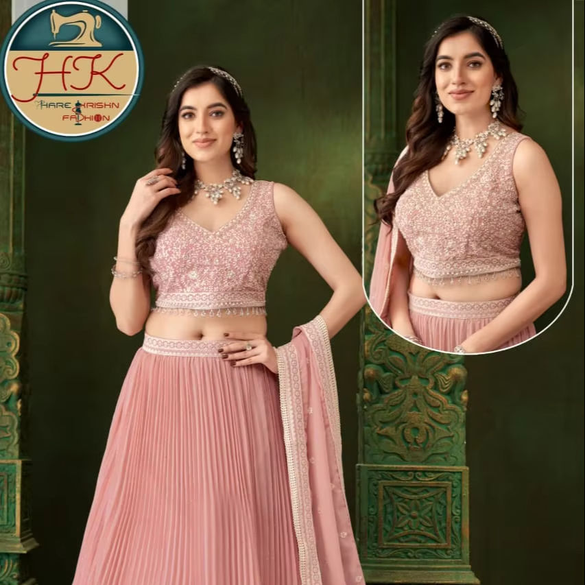 ชุดเลเฮนกา โชลี ปักลายสีชมพูอ่อน สำหรับผู้หญิง ออกแบบโดยดีไซเนอร์ เหมาะสำหรับงานปาร์ตี้ งานแต่งงาน งานเฉลิมฉลอง ชุดประจำชาติอินเดีย