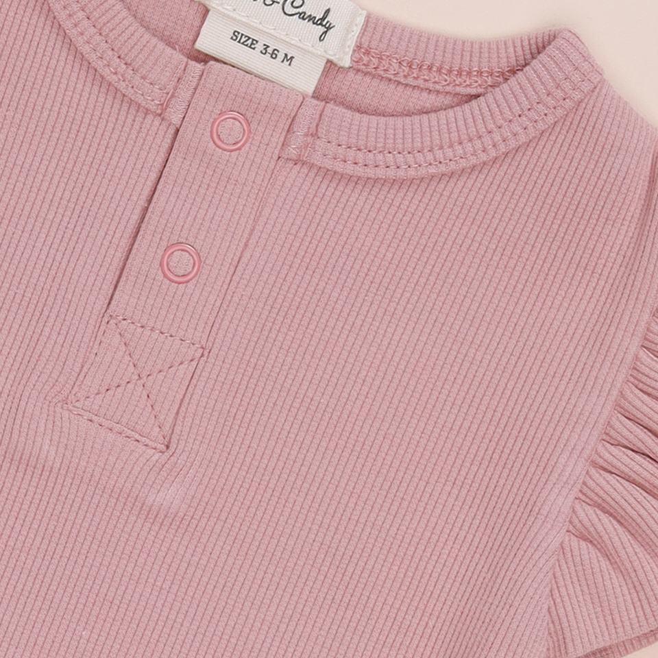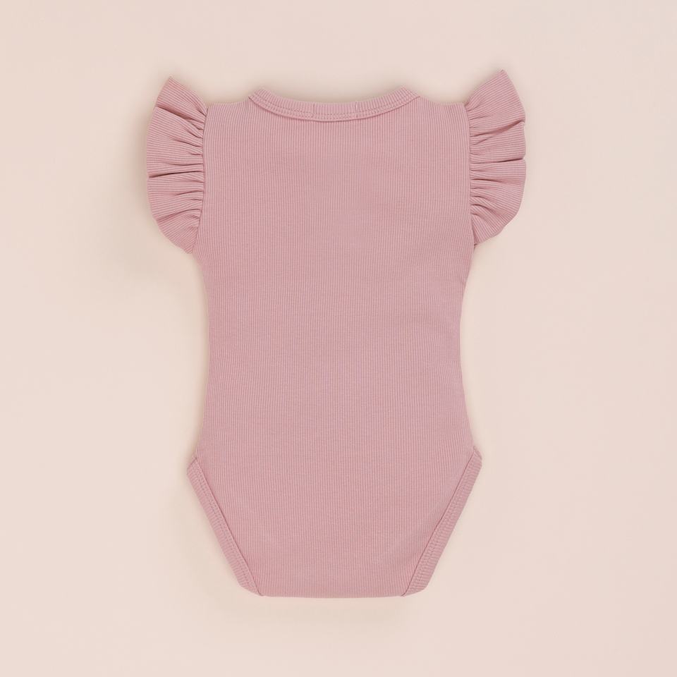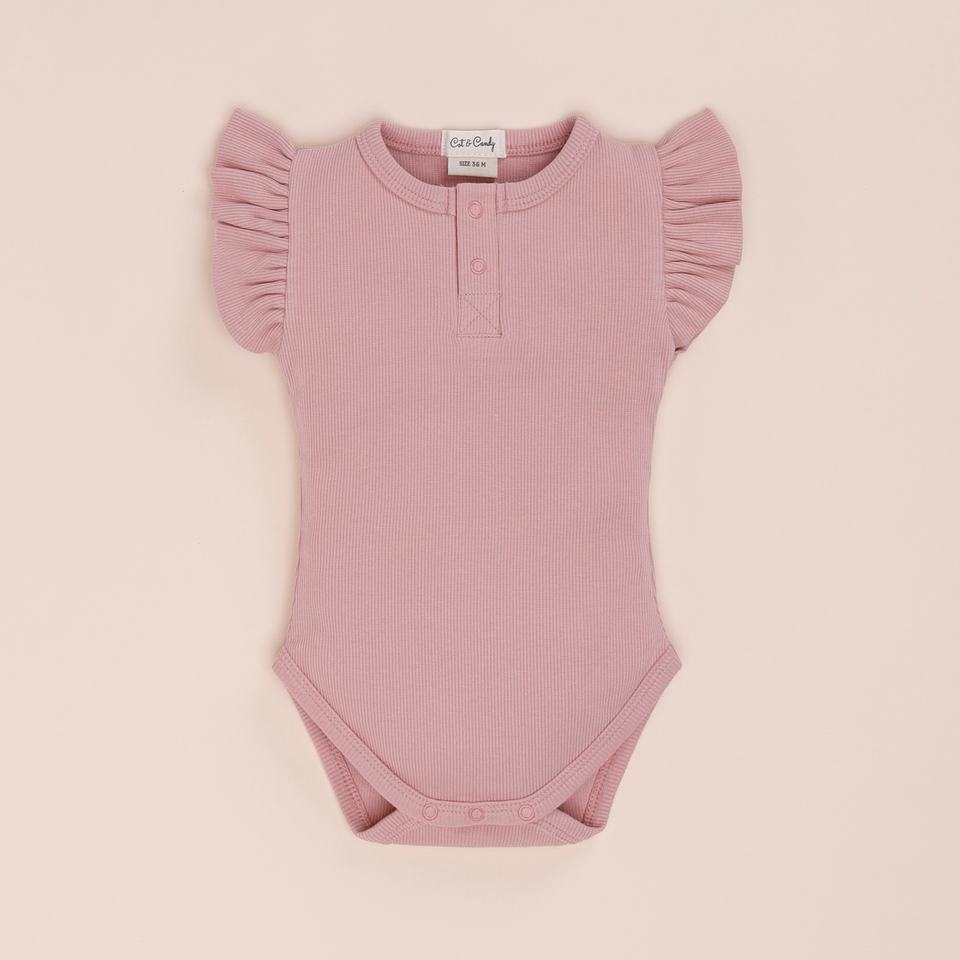 ชุดบอดี้สูทแขนสั้นยืดหยุ่นไม้ไผ่ออร์แกนิคสีชมพูบลัช