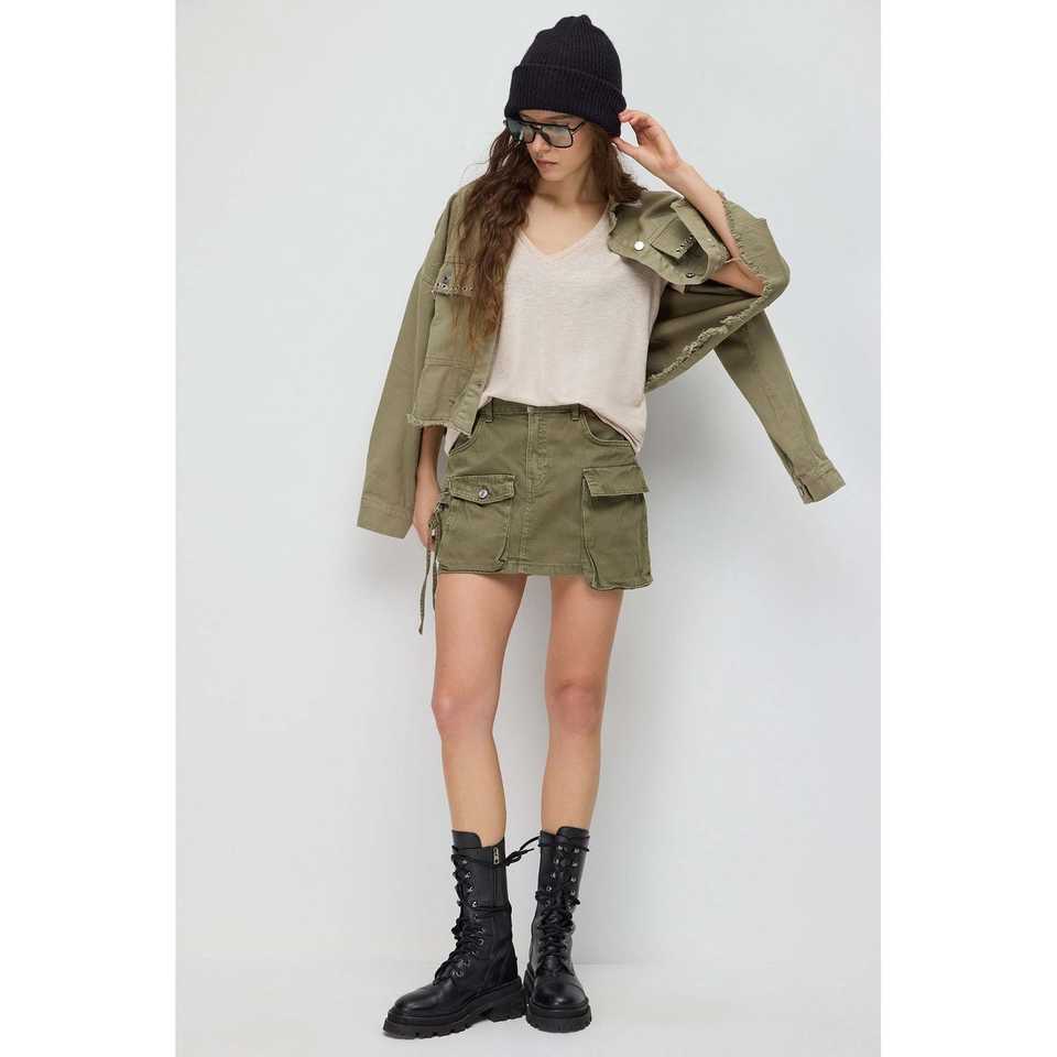 เสื้อยืดคอวีผ้าวิบวับแบบพื้นฐาน