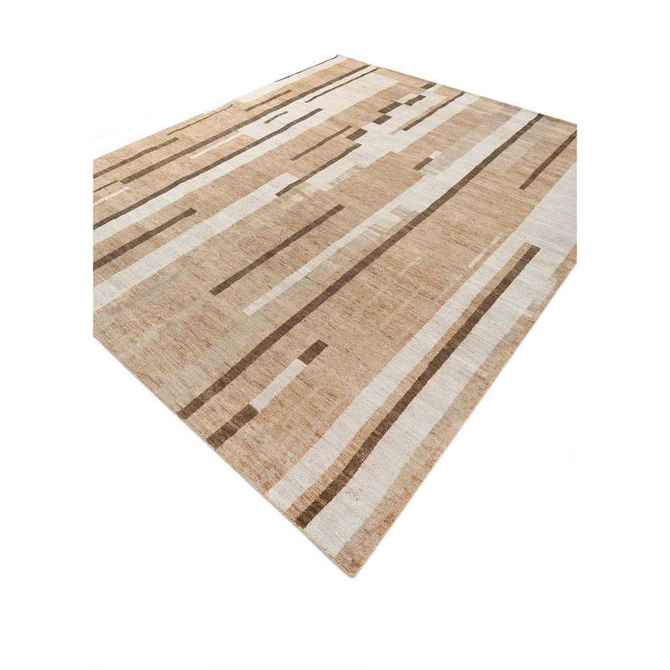 พรมขนสัตว์ถักมือสีเบจและสีน้ำตาลขนาดใหญ่ รุ่น AKWJ-1005 ลายแบบนามธรรม สำหรับตกแต่งห้องนั่งเล่นวัยรุ่น