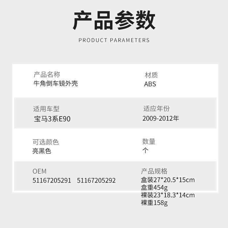 บีเอ็มดับเบิลยู ซีรีส์ 3 อี 90 2009-2012 ฝาครอบกระจกมองหลังชุดเต็มวัสดุเอบีเอส