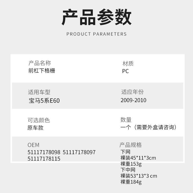 Applicable car brands:BMW 5 Series E60